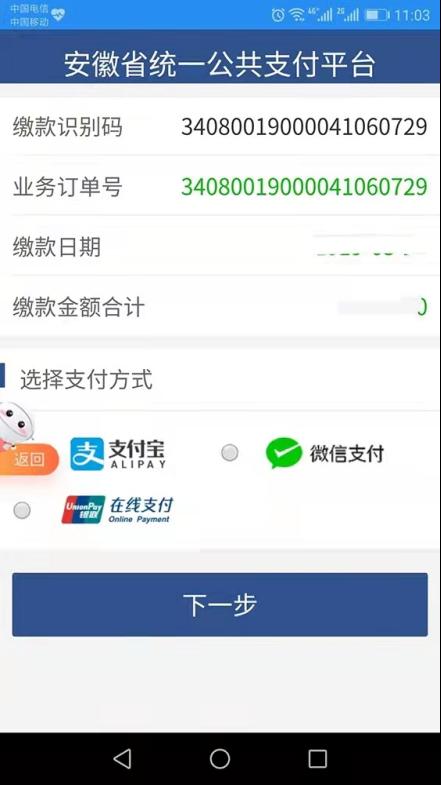 二、根据财非税【2018】582号《安庆市财政局关于印发安庆市统一公共支付平台及非税系统改造试点工作方案的通知》,本次收费全面实行统一公共支付平台,通过支付宝、微信形式缴纳。请新生在 11月30日之前通过支付宝、微信缴纳学杂费。缴费成功的同学可登录安徽省财政厅官网-票据服务平台,通过缴款识别码自行获取缴费发票。