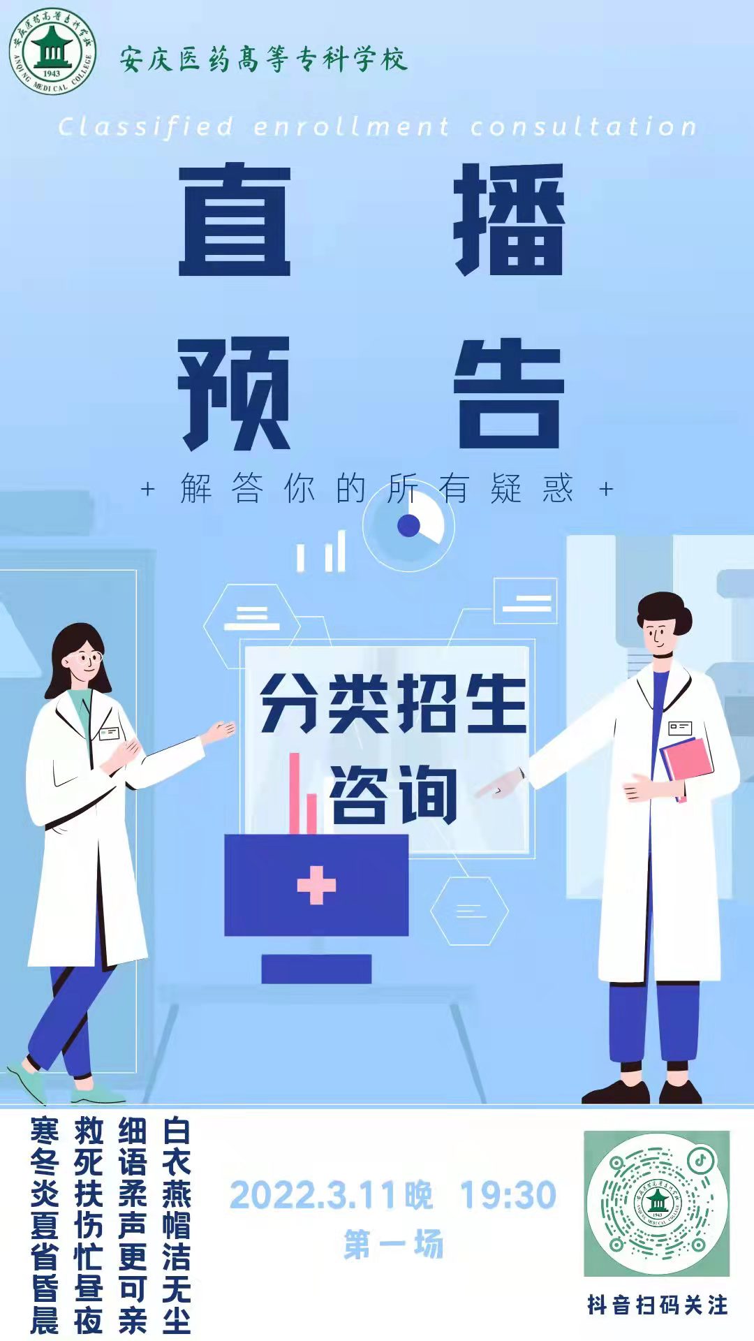 【直播预告】2022年安庆医专分类招生线上咨询会(第一场)