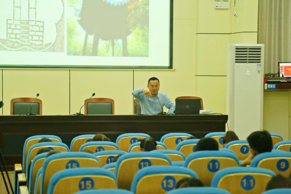 汪军以《百花亭人文精神的延续——漫话安庆城市文脉》为主题,以我校标志性历史建筑百花亭的历史变迁和著名历史典故为线索,讲述了清末民国时期,安庆地区百花亭精神的形成以及从安庆卫校到安庆医专对这一人文精神的传承。