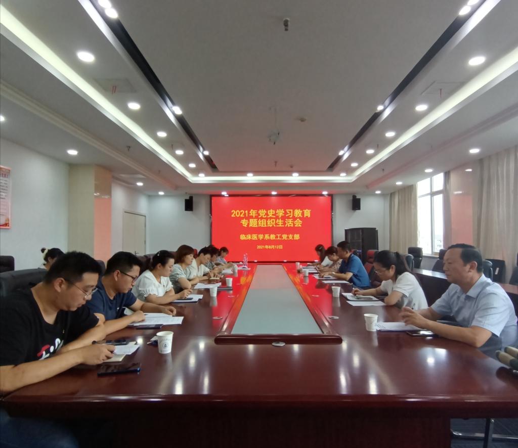 按照学校党委《关于基层党组织召开党史学习教育专题组织生活会的通知》要求,8月12日上午,临床医学系党总支教工支部党史学习教育专题组织生活会在图书馆六楼会议室举行,校党委副书记、校长姚文兵以普通党员身份参加组织生活,校党史学习教育领导小组副组长、校党委组织部部长朱三九、校党史学习教育指导督查组工作人员、教工支部全体成员参加,会议由教工支部书记刘燕主持。