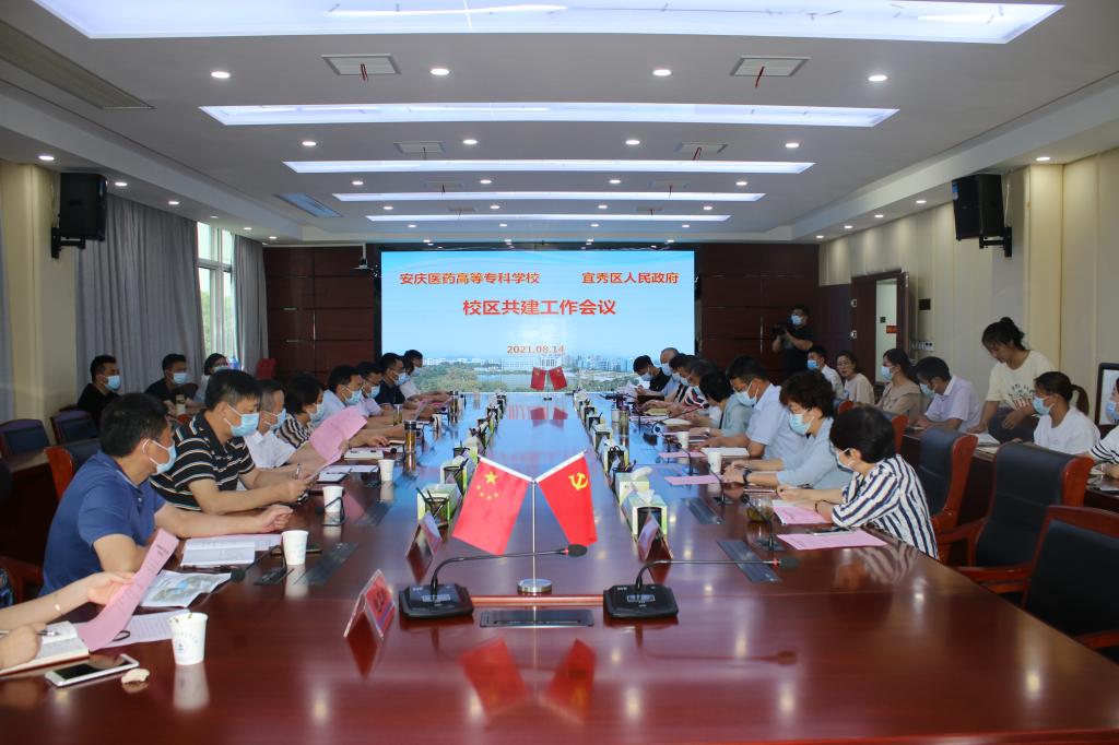 8月14日上午,校党委书记叶林霞、校长姚文兵与宜秀区区委副书记、区长吴曙就进一步推进校区合作共建事宜进行座谈交流。宜秀区区委常委、大龙山镇党委书记胡昶,副区长张婷、潘长周;校党委委员叶中胜、朱雯等参加座谈。