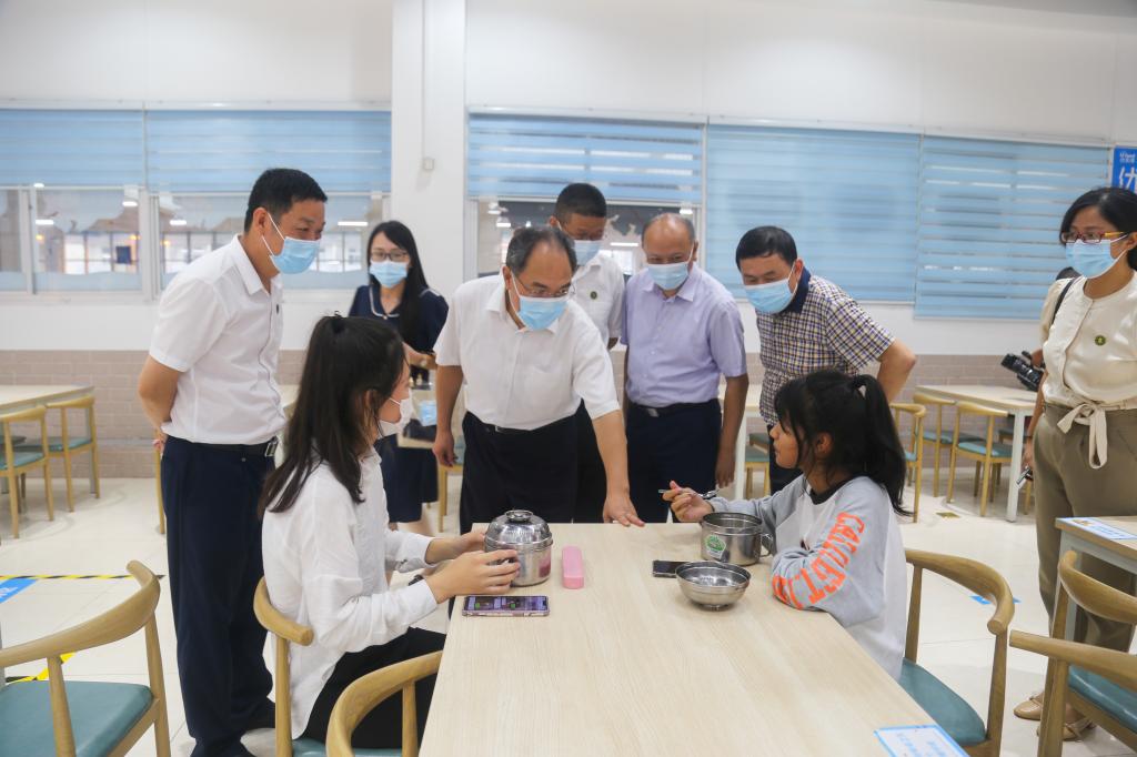 在内地新疆班餐厅,赵振华看望慰问了我校新疆班同学,勉励她们勤奋学习,提高综合素质,做民族团结的践行者。要求老师要热爱学生、熟悉生情,做一个有教育情怀的老师。
