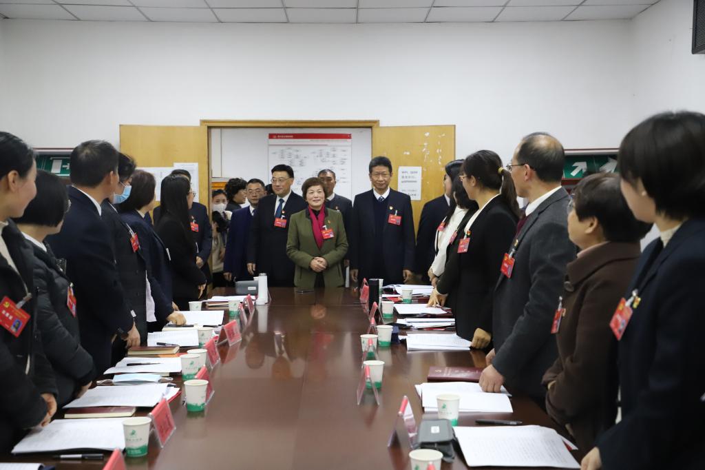 12月24日下午,校领导叶林霞、姚文兵、张仕庆、陈燚、朱庆丰、毛以成、叶中胜、朱三九、朱雯前往各代表团会议地点,看望出席校第二次党代会的代表。