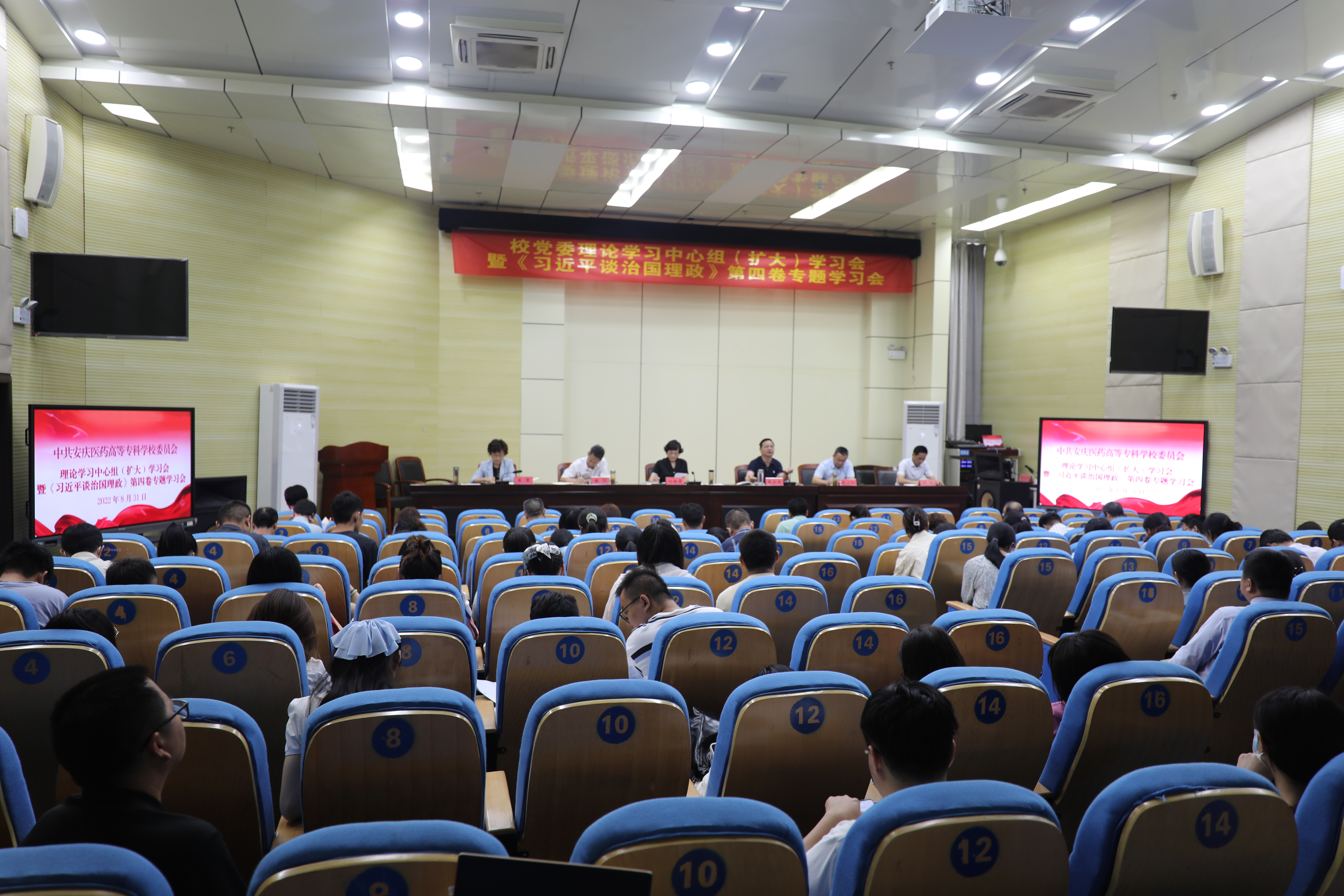 8月31日下午,校党委书记叶林霞主持召开校党委理论学习中心组(扩大)会议,认真学习贯彻习近平总书记重要讲话精神,专题学习《习近平谈治国理政》第四卷。校党委副书记、校长姚文兵,党委副书记张仕庆,纪委书记陈燚,副校长朱庆丰、毛以成,党委委员朱三九、朱雯、陈琪、刘毅出席。学习会由叶林霞主持。