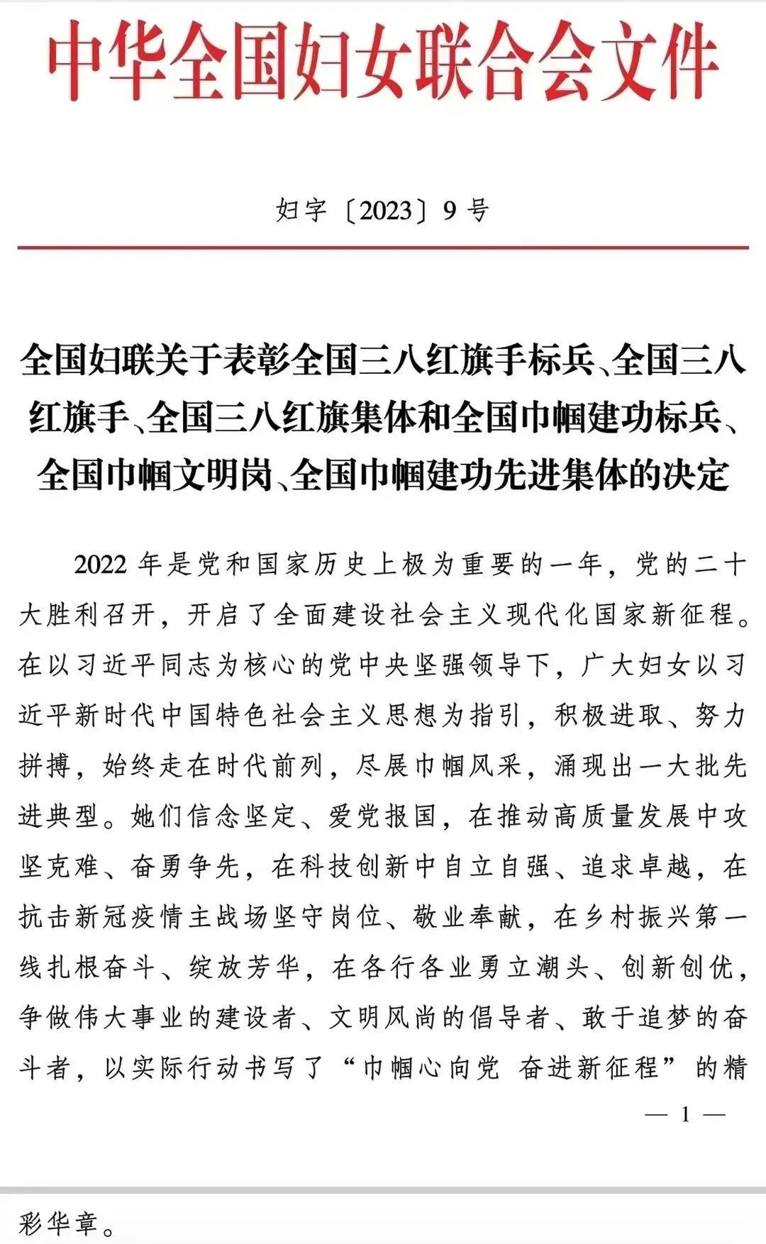 根据《全国妇联关于表彰全国三八红旗手标兵、全国三八红旗手、全国三八红旗集体和全国巾帼建功标兵、全国巾帼文明岗、全国巾帼建功先进集体的决定》(妇字〔2023〕9号)文件,我校荣获“全国巾帼建功先进集体”称号。