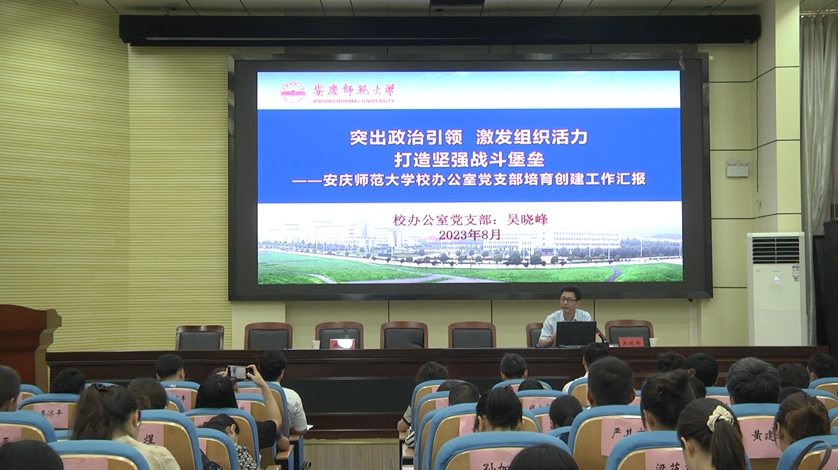 四天的培训中,安庆师范大学办公室副主任、校办公室党支部书记吴晓峰以“突出政治引领 激发组织活力 打造坚强战斗堡垒”为题作了首场报告。他从党支部的总体情况、对标“七个有力”建设过硬样板支部、创新机关党建方法,打造支部品牌特色三个方面分享了安庆师范大学办公室“样板支部”培育创建过程,为我校机关党支部创建“样板支部”提供了宝贵的经验和做法。