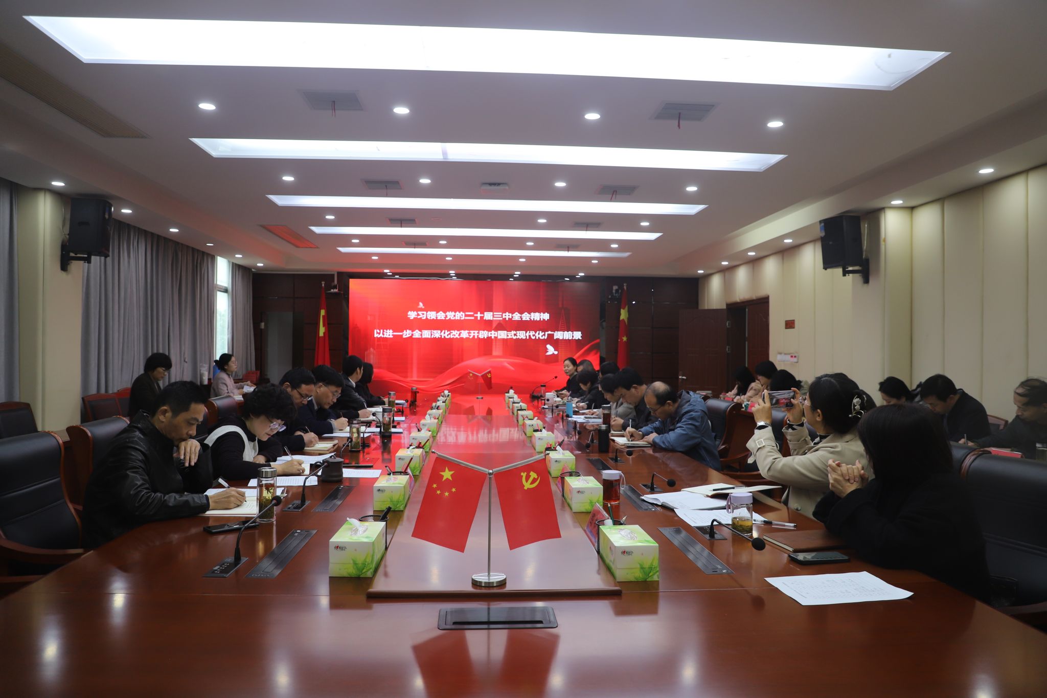 11月18日上午,校党委理论学习中心组召开专题学习会,在前期学习基础上,进一步深入学习党的二十届三中全会精神,围绕“深入学习领会党的二十届三中全会精神,进一步全面深化学校改革”主题,开展集体学习研讨,研究我校贯彻落实措施。校党委副书记、校长朱庆丰主持研讨并讲话。市委列席旁听工作组第三小组组长、市委讲师团团长陈大士列席旁听。校党政领导班子,附院、各学院、处室(中心)负责人等参加会议。