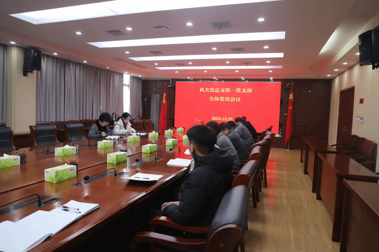 2024年12月25日,机关一支部召开全体党员会议,支部全体党员参会,支部书记陈贵萍主持会议。校党委委员、宣传部部长朱雯以普通党员身份参加会议。