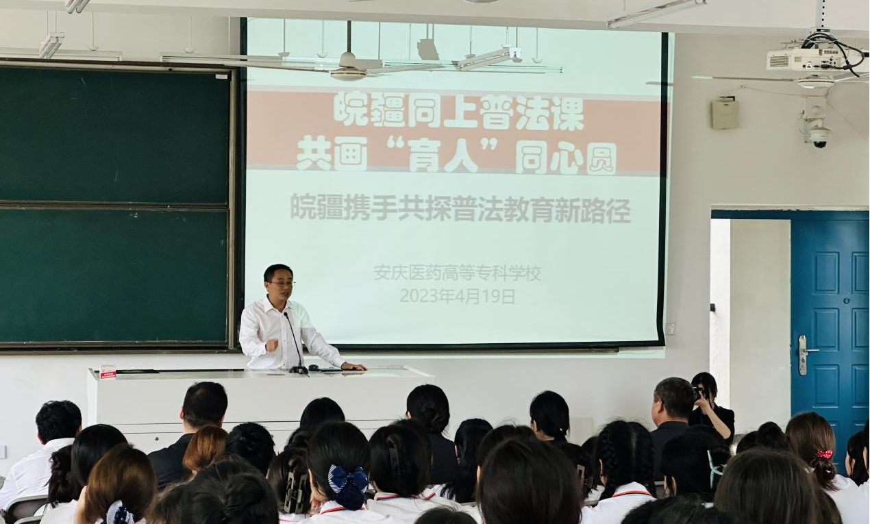 为加强学生普法教育工作,提高学生们的法治观念和法律意识,预防未成年人违法犯罪,护航学生健康成长,2023年4月19日下午,我校邀请安庆市中级人民法院法官走进校园,为中职班开展了以“皖疆同上普法课,共画育人同心圆”为主题的法制宣传教育活动。