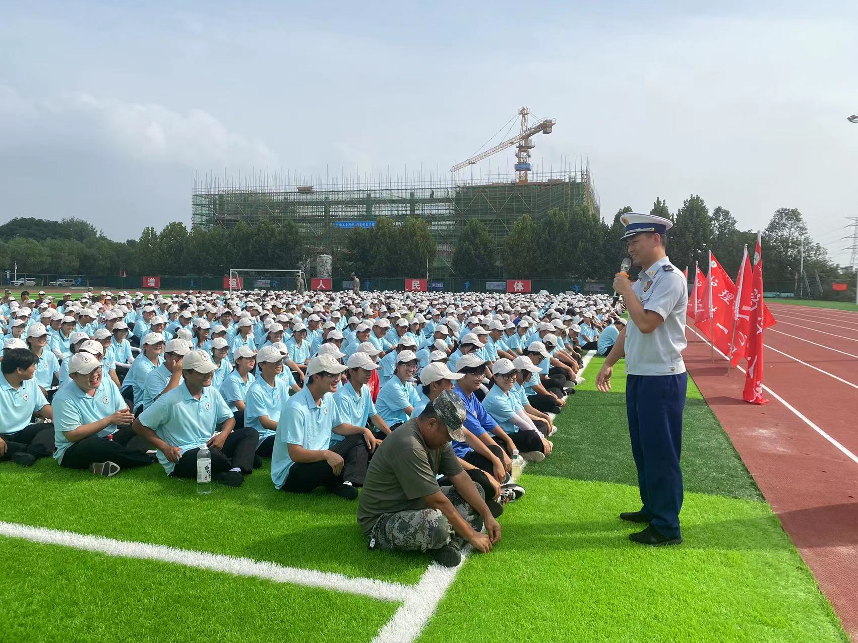 本次演练培训分为安全疏散演练、消防安全知识培训、灭火演练三个部分。疏散演练开始前工作人员对演练步骤、人员分工、疏散路线做了周密安排,讲解了疏散演练步骤及注意事项。宜秀区大龙山消防救援站政治指导员梁智超在操场给新生开展了一场生动的消防安全知识讲座。