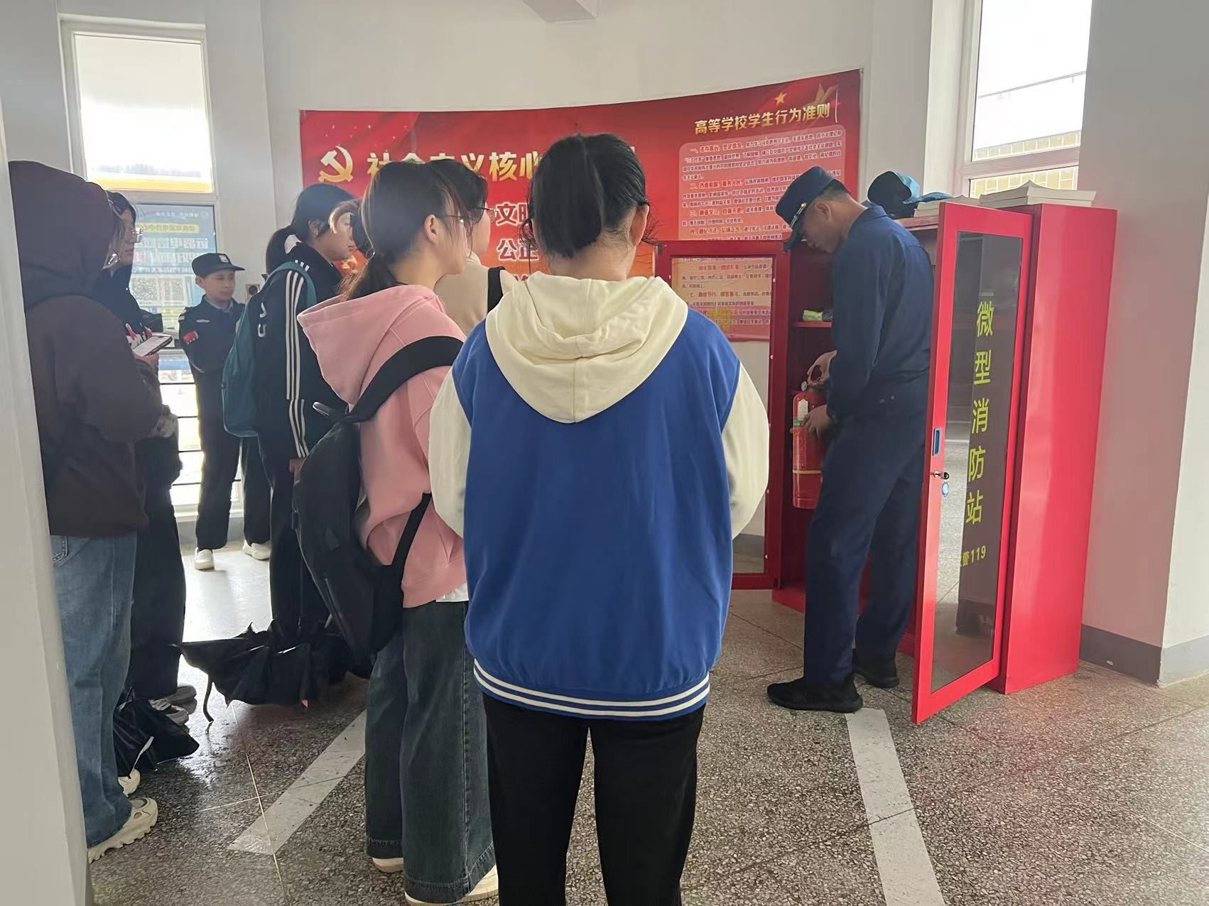 学校联合宜秀区消防救援大队进校开展专题宣传活动,同学们在微型消防站接受消防安全知识讲解,学习了常用消防器材、逃生自救常识、安全用电规范等知识。不仅让同学们认识到消防安全的重要性,更提高了“安全第一,预防为主”的消防安全意识。