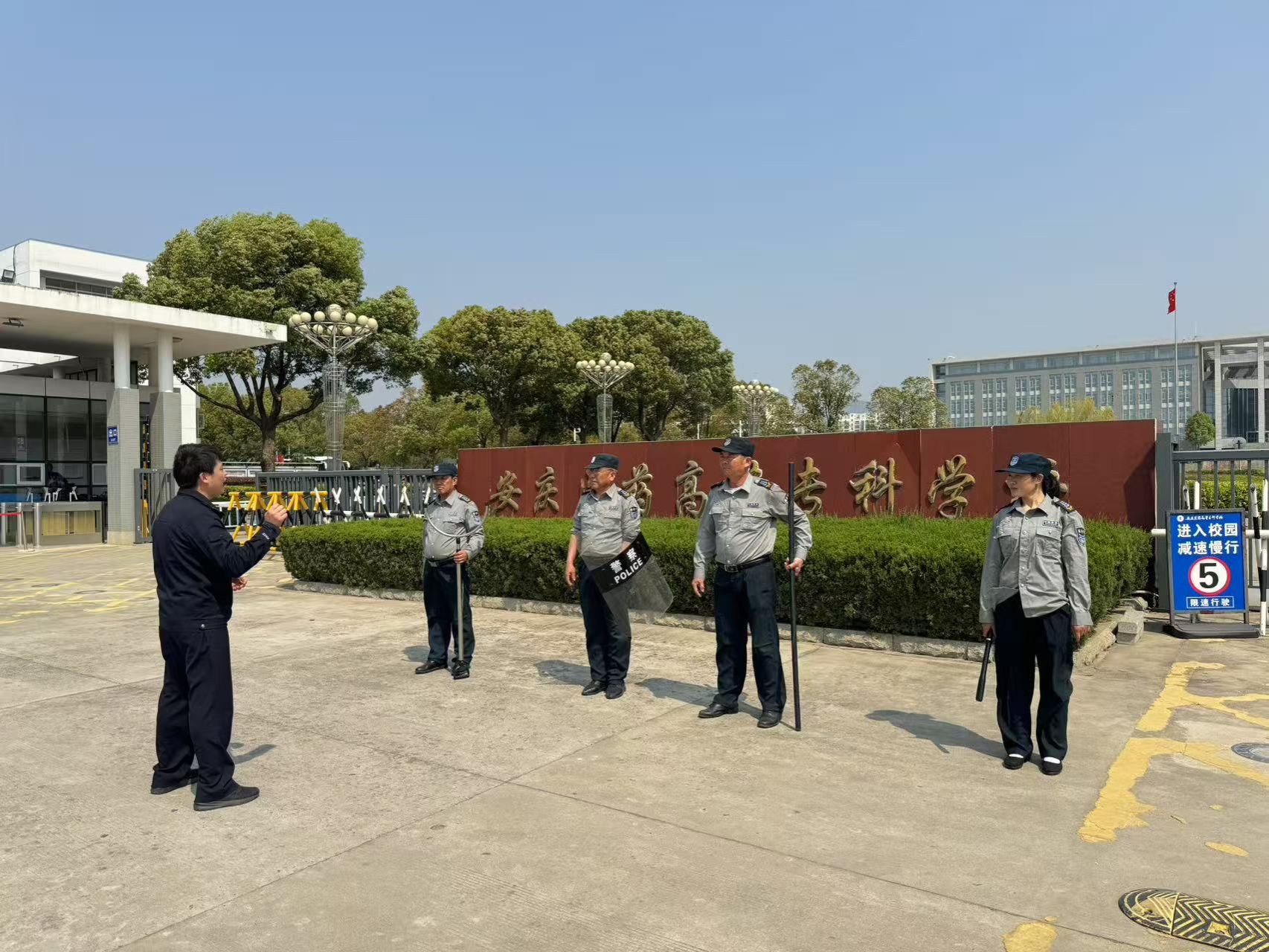 为进一步加强我校反恐防暴应急处置能力切实保障师生生命财产安全,有效预防突发反恐怖暴力事件造成的人员伤害,2025年3月26日上午,我校组织保卫处、当班保安在学校南大门开展了一次反恐应急实战演练。