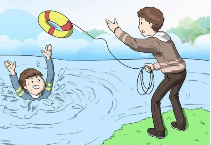 下水后不要从溺水者的正面靠近,应该从后面或侧面包抄施救,以仰泳的方法把溺水者带到安全处。