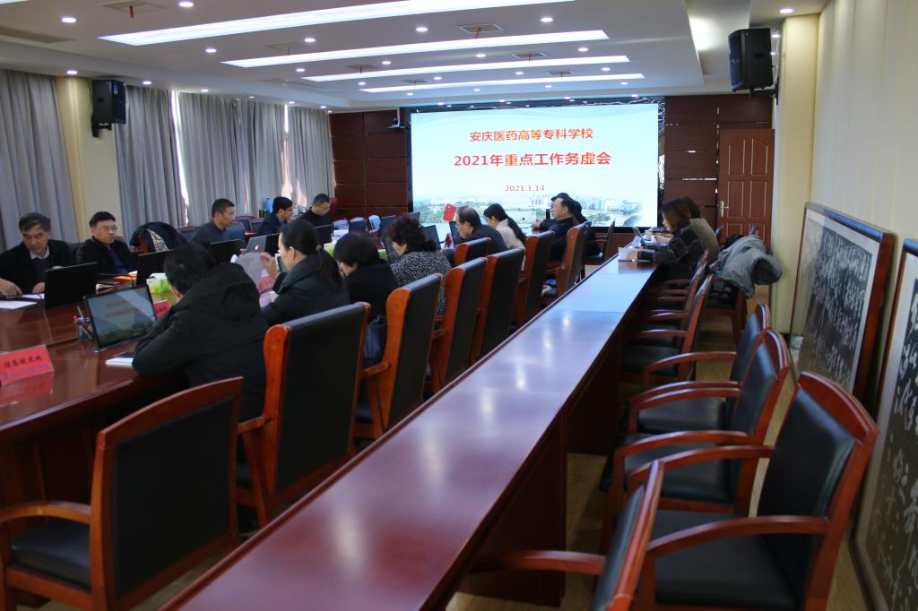 2021年1月14日下午,学校在行政楼三楼大会议室召开2021年重点工作务虚会。校长姚文兵主持会议并作总结讲话。党委副书记张仕庆,副校长朱庆丰,党委委员叶中胜、朱三九,各相关部门、系部(学院)主要负责人等参加会议。