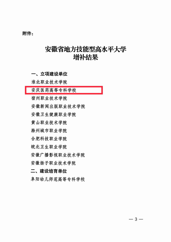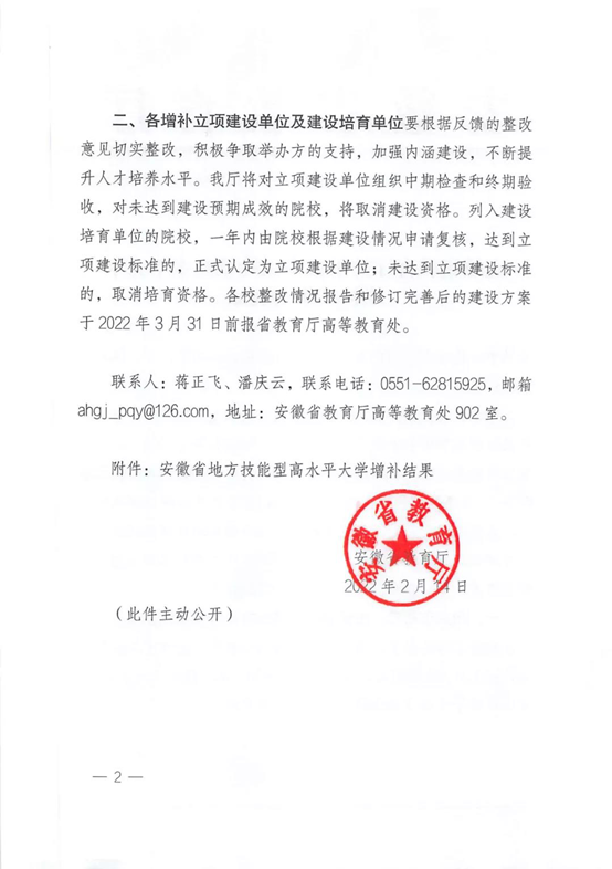 近日,安徽省教育厅下发《关于公布技能型高水平大学增补结果的通知》,我校获批安徽省地方技能型高水平大学立项建设单位。