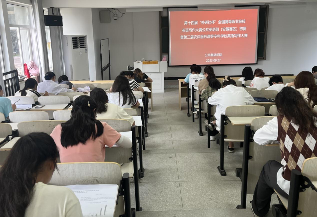 9月27日,第十四届“外研社杯”全国高等职业院校英语写作大赛校级初赛暨第三届安庆医药高等专科学校英语写作大赛在我校举行,来自校各学院的163名学生报名参加此次比赛。