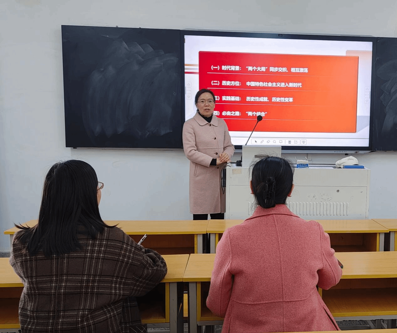为深入推进学习贯彻习近平新时代中国特色社会主义思想主题教育,近日,公共基础学院语言党支部书记钱秀娟为支部全体党员讲授主题教育专题党课,钱书记以“习近平新时代中国特色社会主义思想”为题,紧扣“四个讲清楚”,围绕“习近平新时代中国特色社会主义思想创立的时代背景”、“习近平新时代中国特色社会主义思想的科学体系”、“习近平新时代中国特色社会主义思想的历史地位”等方面作了全面系统阐述,深入浅出地讲授了如何深刻领会全面把握习近平新时代中国特色社会主义思想的科学体系、核心要义及实践要求,并就高质量党建引领学院高质量发展进行思考交流。