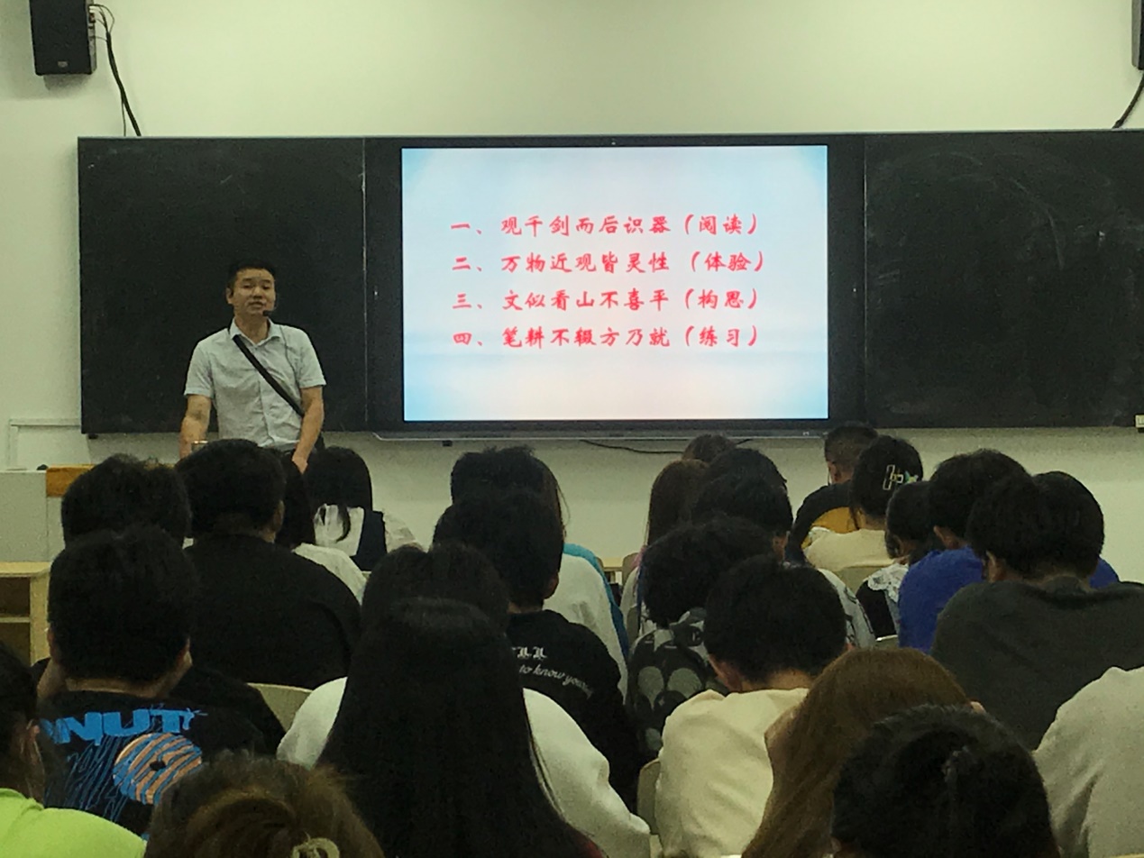 刘乔老师以文学名家名作为蓝本,结合大学生实际,介绍了阅读、体验、构思、练习等方面的基本知识,分享了读写方面的方法与技巧。他希望广大同学加强阅读,留心生活,观察社会,体验人生,积累写作的“语言”、“素材”和“情感”,克服“写作恐惧症”,在学习之余,积极练笔,提升个人写作水平。(撰文:刘乔;供图:刘乔;审改:毛小明)