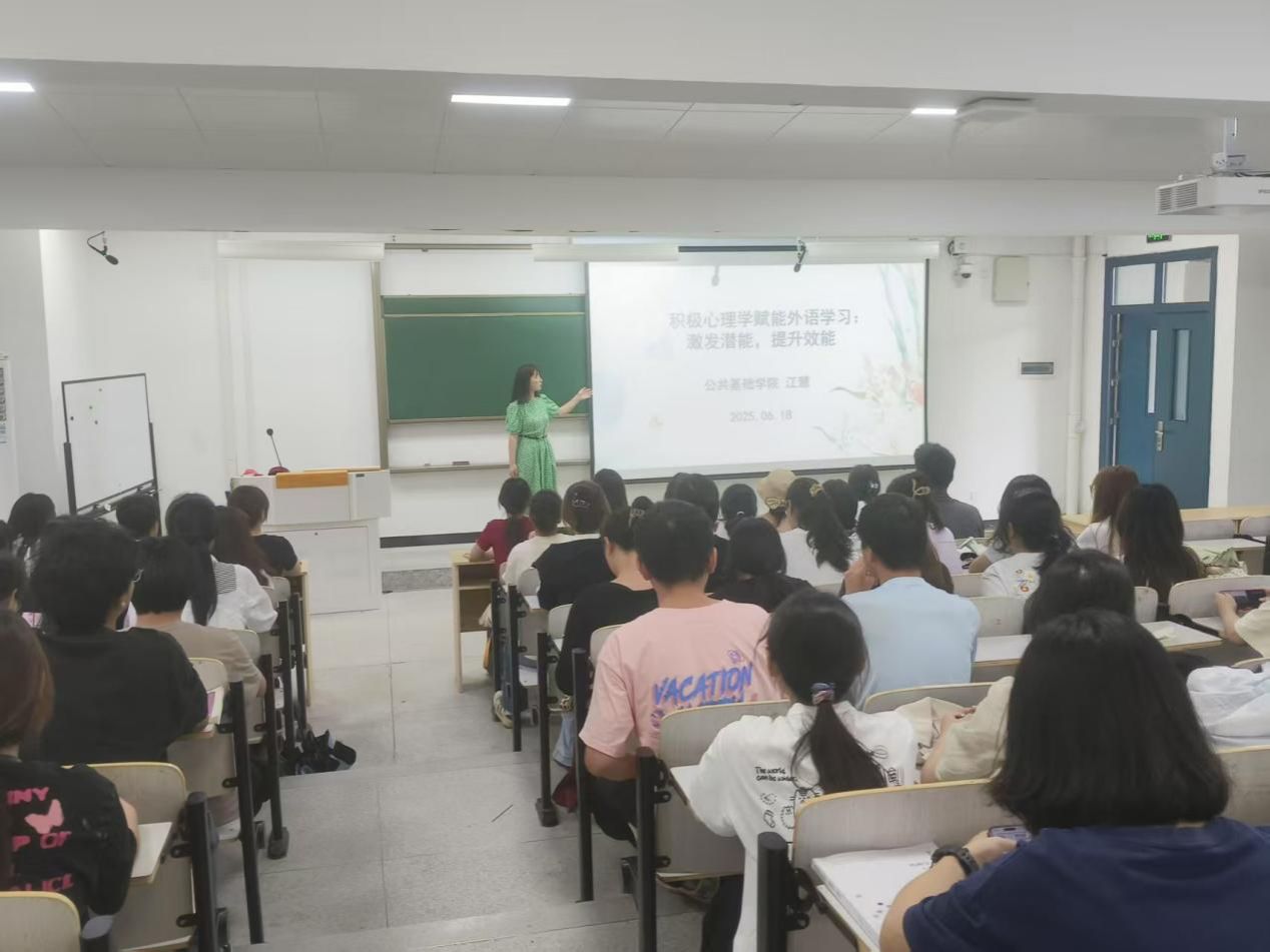 6月18日中午,由江慧老师主讲的学术讲座《积极心理学赋能外语学习:激发潜能,提升效能》在第五阶梯教室成功举办。本次讲座吸引了近百名师生参与,现场气氛热烈,互动频繁。
