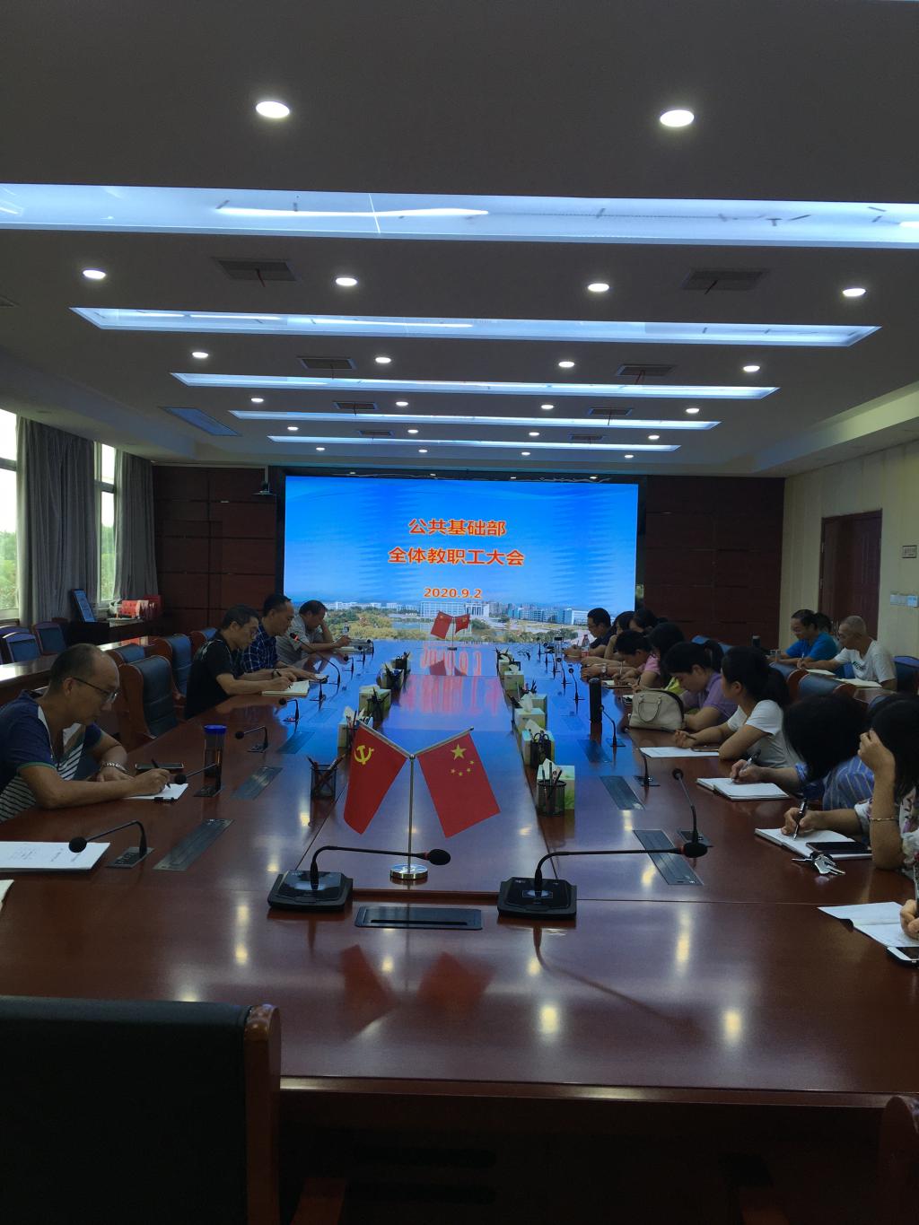 2020年9月2日,公共基础部在行政楼三楼会议室召开了新学期系部全体教师会议。会议由公共基础部主任毛小明主持,公共基础部全体教师出席会议。会议流程分为两项:1. 公共基础部直属党支部书记贺正皖就暑期各项工作进行总结发言;2. 公共基础部主任毛小明就新学期各项工作进行部署发言。