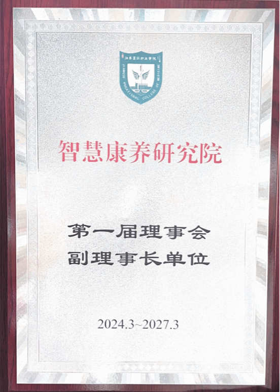 江苏医药职业学院中康养产业学院暨智慧康养研究院揭牌后,向智慧康养研究院及其合作单位颁发了牌匾。我校被授予“副理事长单位”牌匾。