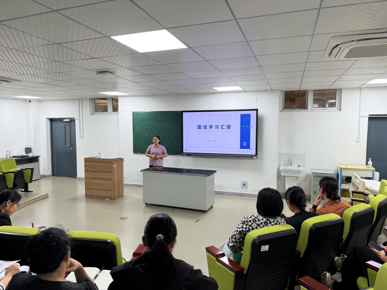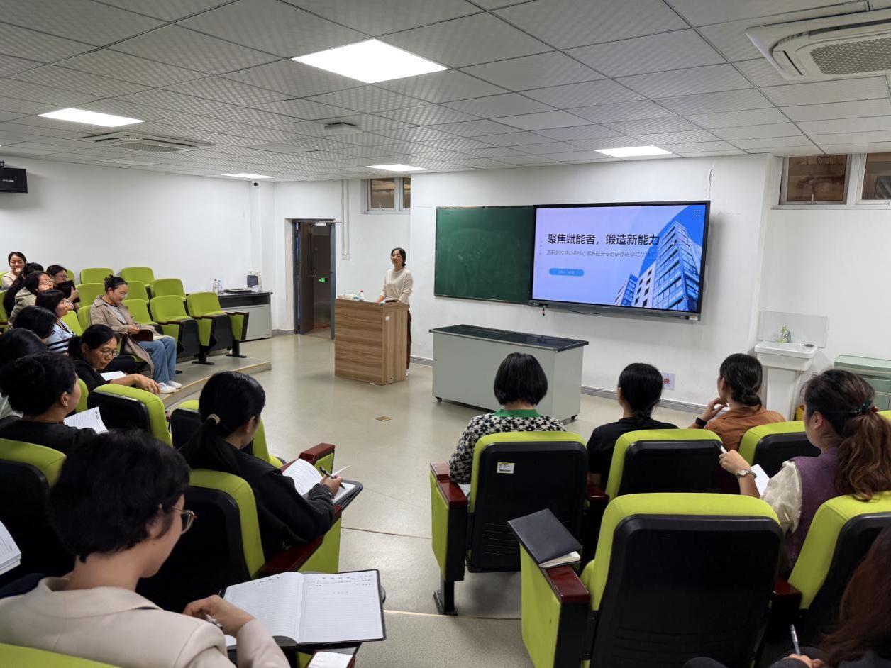 分享会上,梁宇鸣、马文娜、何薇三位老师结合各自参训经历,作了系统而深入的交流。梁宇鸣围绕“教学活动设计”主题,强调以学情分析为基础,推动以学生为中心的教学流程优化,并介绍了如何结合支架式教学、合作学习等多元教学方法,打造高效互动课堂。马文娜以“聚焦赋能者,锻造新能力”为题,分享了在高职院校培训者核心素养提升专题研修班所学,重点介绍了“人机协同”培训管理模式与人工智能在职业教育中的创新应用,为教育数字化转型注入新动能。何薇分享了她在康复治疗技术的企业实践成果,以“淋巴水肿治疗技术进展”为切入点,结合临床案例,生动展示了徒手淋巴引流(MLD)在癌症术后患者康复中的具体应用和疗效。