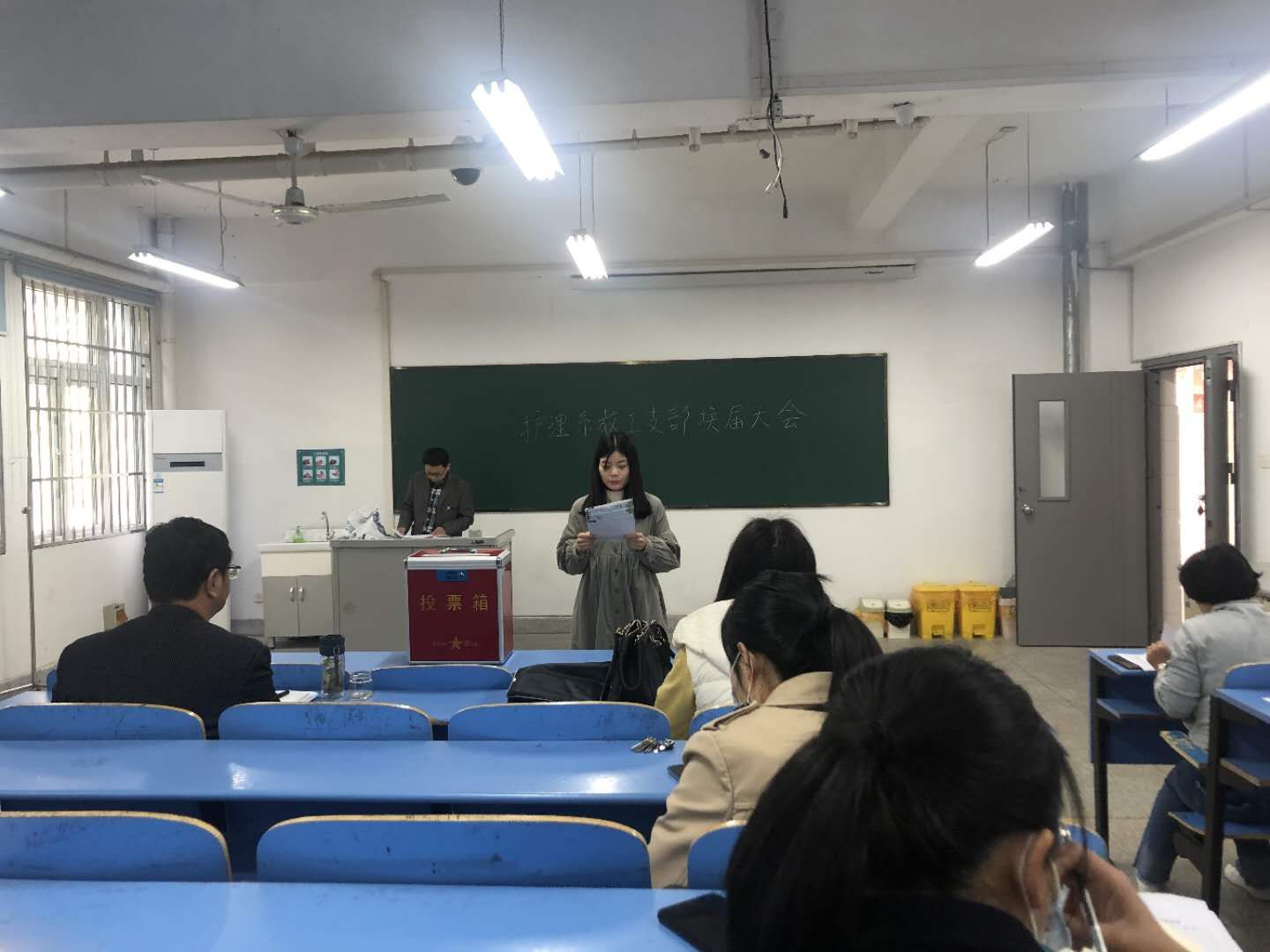 2020年4月22日上午9:30,护理系教工支部在护理实训楼一楼护理研究室召开了预备党员转正大会。会议由党支部书记金耀主持。