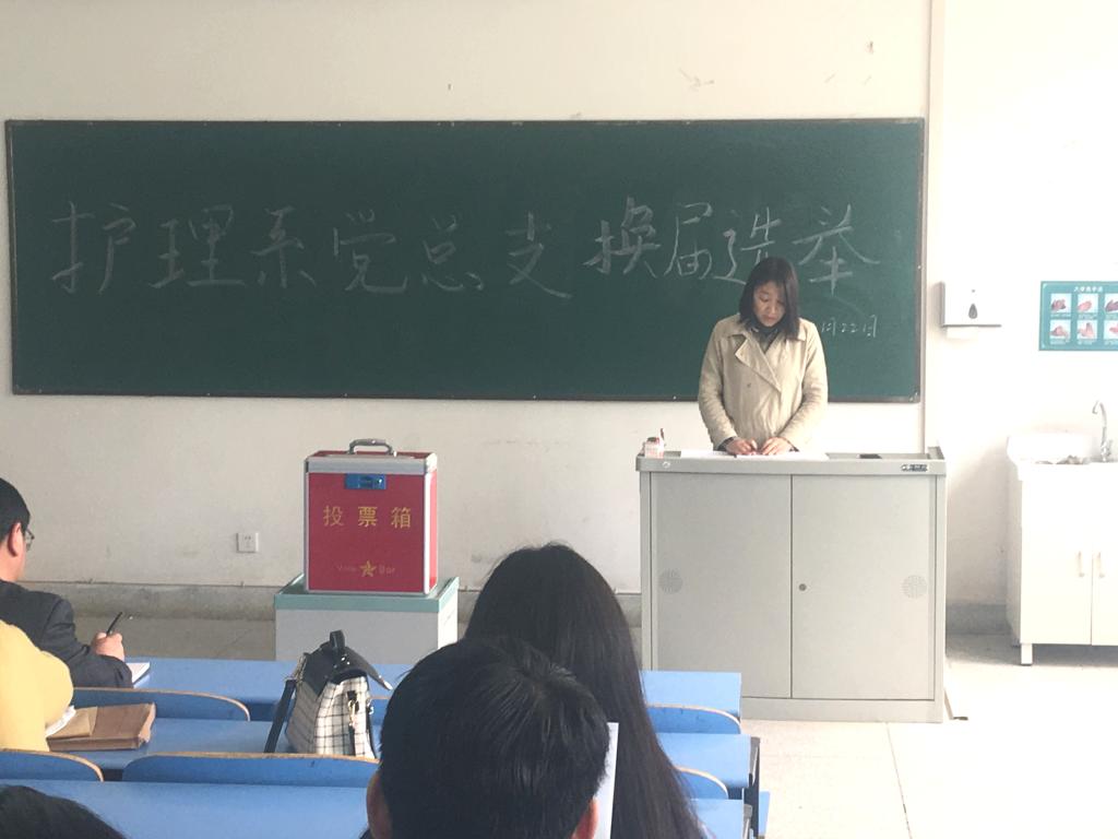 会上,护理系党总支副书记、系主任胡忠亚就本届总支班子在政治理论学习、党的组织建设、作风建设、制度建设、党风廉政建设、党员发展情况、教学和学生工作开展情况及取得的成绩与不足向全体党员进行了汇报。会议通过了大会选举办法,并对总监票人、监票人和计票人名单进行表决。会议严格按照选举办法,以无记名投票方式选举产生了新一届护理系党总支5名委员。
