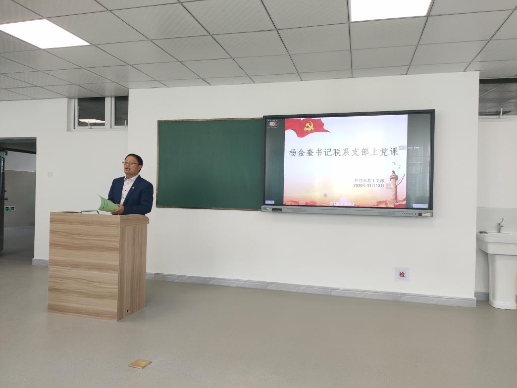11月12日,校党委书记杨金奎同志联系护理系教工支部上党课,宣讲中国共产党十九届五中全会精神,并就护理系教育教学改革、专业建设、学校发展等方面进行调研,护理系教工支部全体党员参加会议。