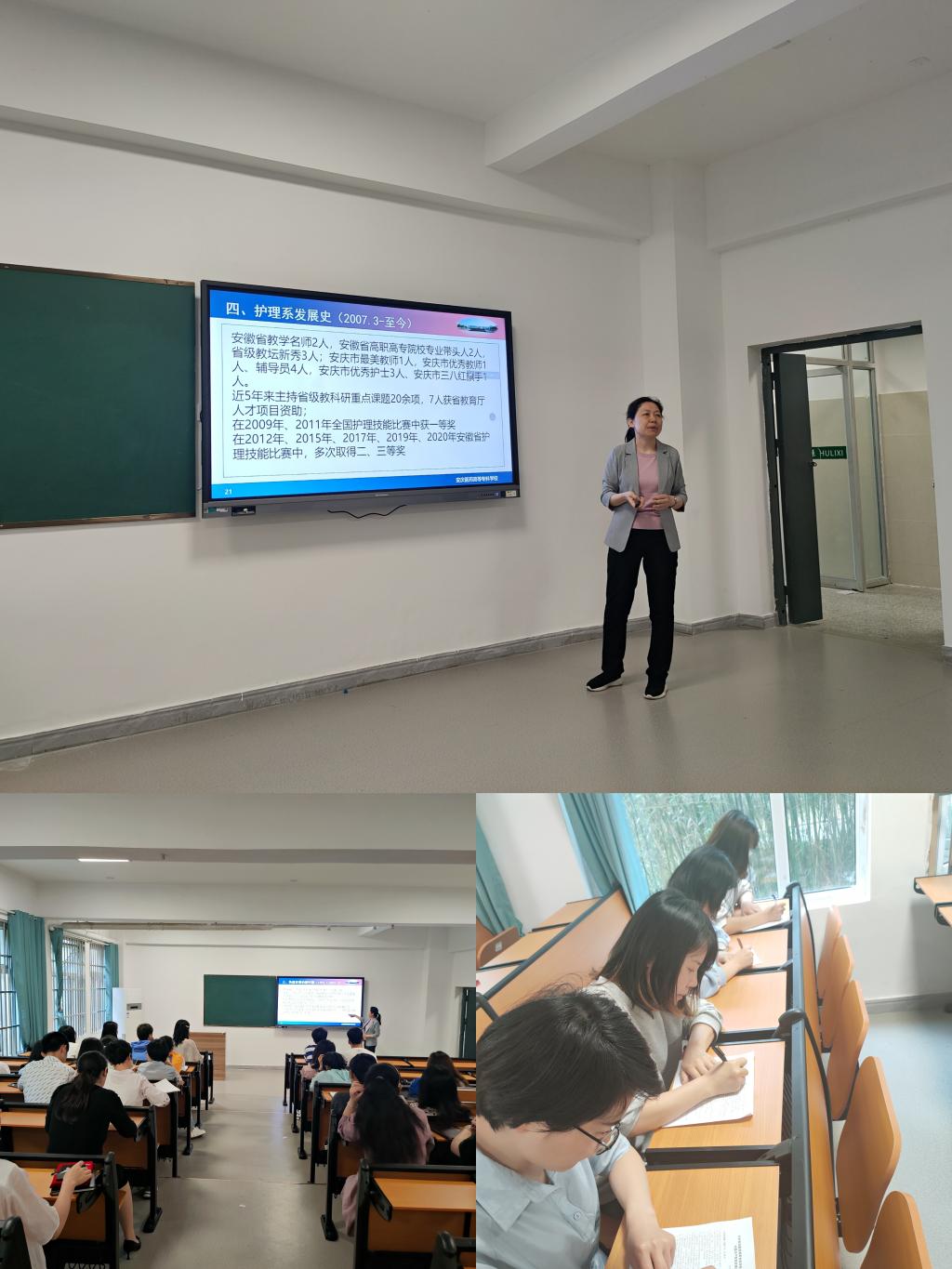 5月12日中午,护理系总支书记钱立晶为全系新老教师做了一场主题为“护理系发展史”的讲座。讲座中钱立晶结合自己的经历回顾了学校尤其是护理系近30年的奋斗历程,让老师们感受到学校成绩都是在前辈们艰苦奋斗中取得的。钱立晶在讲座中也希望新进老师能尽快融入医专护理系大家庭,做到“立德树人”。讲座结束后,系总支结合前期的党史学习情况,组织全体党员进行了党史知识测试。