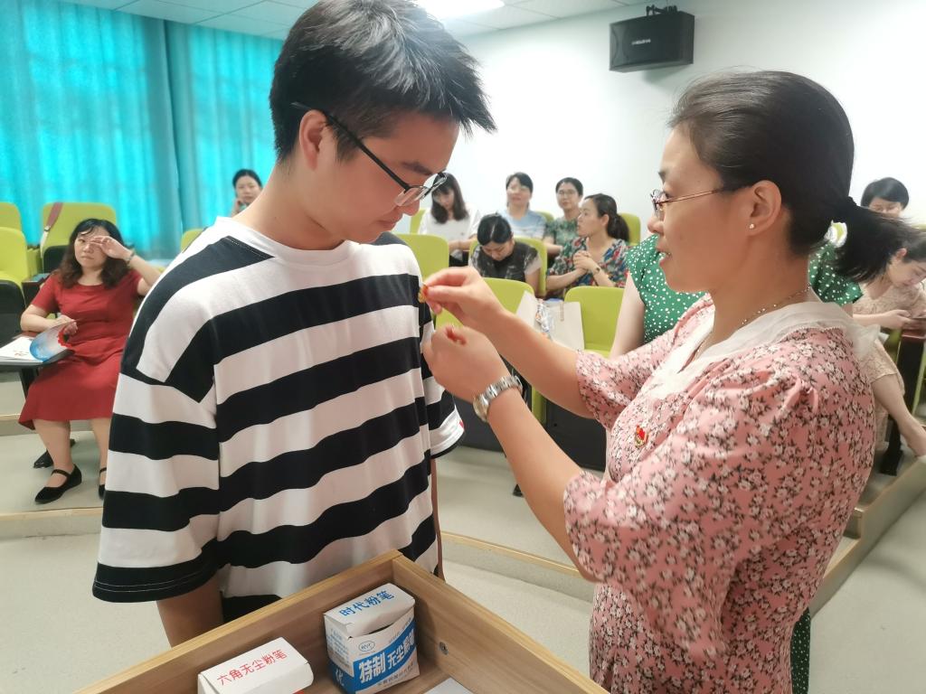 活动伊始,曹承娇等老党员为新入职和新发展的14名党员师生佩戴党员党徽,激励新党员们要不断增强党员意识,充分发挥党员的先锋模范作用,为党徽增光。