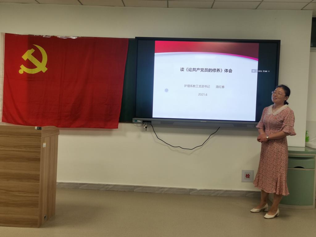 2021年6月30日,在党的100周年华诞前夕,为深情回顾党的奋斗历史,继承和发扬党的光荣传统和优良作风,护理系党总支开展了迎“七一”主题党日活动,全系在校党员师生参加。活动由系党总支副书记曹承娇主持。