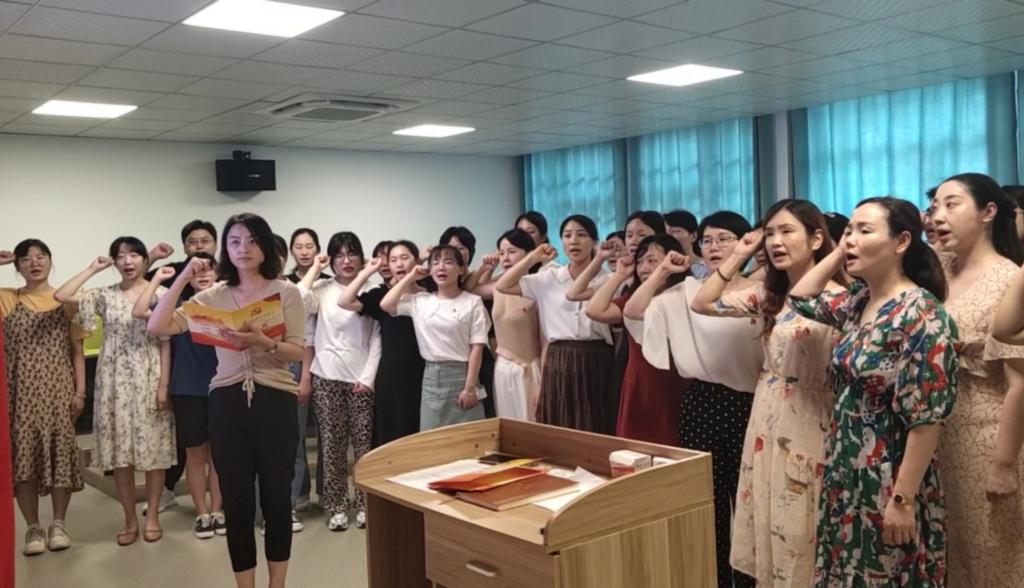 随后,全体党员在鲜红的党旗下高举右手,紧握拳头,庄严宣誓。心中有信仰,脚下有力量,通过宣誓全体党员师生更加坚定了自己的理想信念,增强了要用自己的实际行动践行入党誓词的决心!