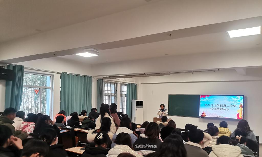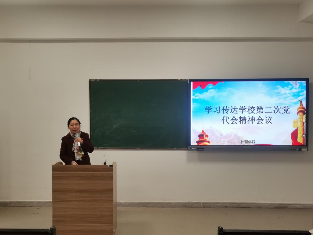 12月29日,护理学院召开专题会议,学习传达中国共产党安庆医药高等专科学校第二次代表大会精神。校党委委员、宣传部部长朱雯出席会议,学院全体教师和学生代表参加。会议由护理学院党总支书记、院长钱立晶主持。