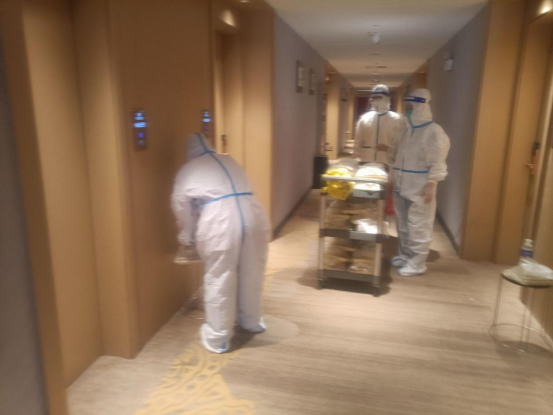 志愿者们经过专业培训后,两人一组去往12个隔离点,协助医护人员开展转运隔离人员、核酸检测、编辑工作表、送餐、环境消杀、清点物资等工作。虽然看不清他们是谁,但我们知道他们是为了谁。他们用自己的无畏和专业,为这座城市铸造起了坚实的“安全屏障”。