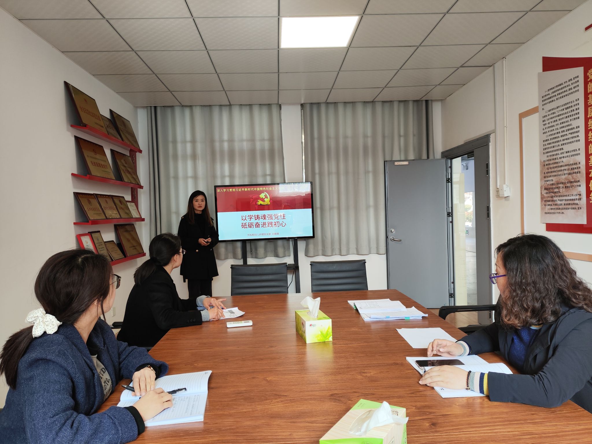 根据学校学习贯彻习近平新时代中国特色社会主义思想主题教育工作安排,为加强党员的思想教育,进一步坚定理想信念、提升党性觉悟、涵养道德操守,11月23日中午,护理学院外科和妇儿护理党支部书记刘晓蓓结合自身学习体会和支部工作实际,以“以学铸魂强党性,砥砺奋进践初心”为题,为支部党员讲授专题党课。