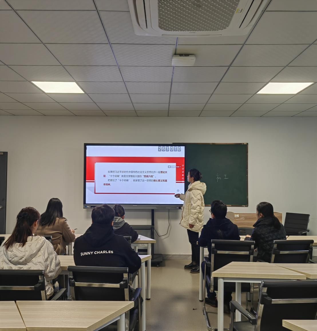 梁蓓蓓从“习近平新时代中国特色社会主义思想回答的重大时代课题”、“习近平新时代中国特色社会主义思想的基本内容”、“习近平新时代中国特色社会主义代表的世界观和方法论”等三个方面进行了讲授。梁蓓蓓表示,科学的世界观和方法论是研究问题和解决问题的关键,作为一名高校教师,肩负着立德树人的神圣使命,一定要加强理论学习,领会运用党的创新理论成果。另外,梁蓓蓓还结合自己的科研经历和教学实际,分享教书育人的心得体会,她强调科研要坚持不懈,要持之以恒,要运用党的创新理论研究新情况、解决新问题、总结新经验,要将科研的成果转化为推动支部各项工作发展的有力抓手。