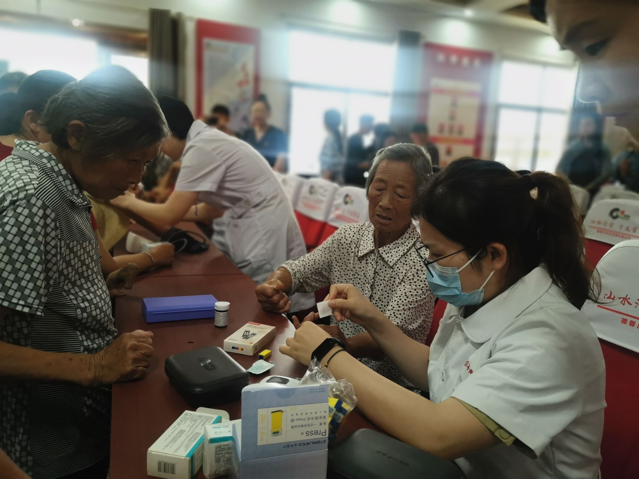 全体党员首先来到潜山县官庄镇官庄村。活动现场,师生志愿者们充分发挥专业优势,有序为当地居民量血压、测血糖、赠送防暑物品,并给予日常健康生活方式指导;同时组织了夏季防病治病、科学饮食、预防溺水等知识宣讲。官庄村民对此次健康服务表示很满意,希望我校师生能够经常下乡入村为基层做实事。
