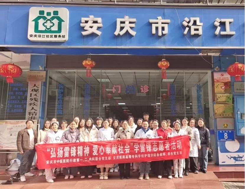 为深入贯彻社会主义核心价值观,弘扬“奉献、友爱、互助、进步”的志愿精神,传承全心全意“为人民服务”的雷锋精神,充分发挥高校专业特色与党员先锋模范作用,3月19日,护理学院党总支联合安庆市中医医院行政第一、第二、内科党支部,走进大观区沿江社区卫生服务站、玉琳老年护理院,开展主题为“弘扬雷锋精神,爱心奉献社会”志愿服务活动。志愿者们把优质中医医疗服务、科学健康知识与暖心人文关怀送到群众身边,以实际行动践行初心使命,展现新时代高校师生和医务工作者的责任担当。