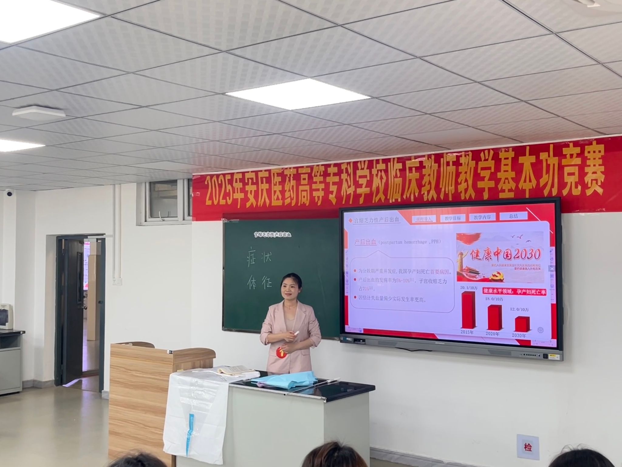 2025年4月23日下午,在安庆医药高等专科学校护理学院一楼示教室举办临床教师教学基本功大赛。校党委委员刘毅、教务处处长汪瑞等出席,护理学院书记、院长钱立晶主持,全体专任教师现场观摩,共同见证临床教师的教学风采。