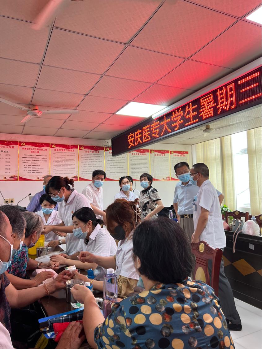 上午,护理学院师生一行32人来到望江县鸦滩镇开展爱心送医活动。师生们为村民测量血压、监测血糖、健康科普宣讲以及一对一健康咨询,护理学院教师发挥专业优势,走入乡村基层,将主题党日活动与学生暑期“三下乡”社会实践活动相结合,发挥党员的先锋模范作用,引导学生感受“学以致用、以用促学”的真实体会,以实际行动助力健康中国建设。