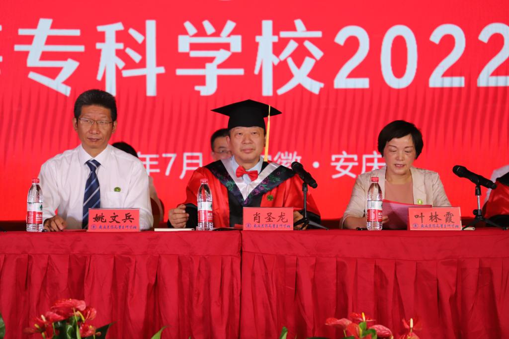副校长朱庆丰宣读《关于2022届专科毕业生毕业的决定》,2022届3123名专科毕业生符合安庆医药高等专科学校普通全日制专科生学籍管理有关毕业规定,准予毕业。