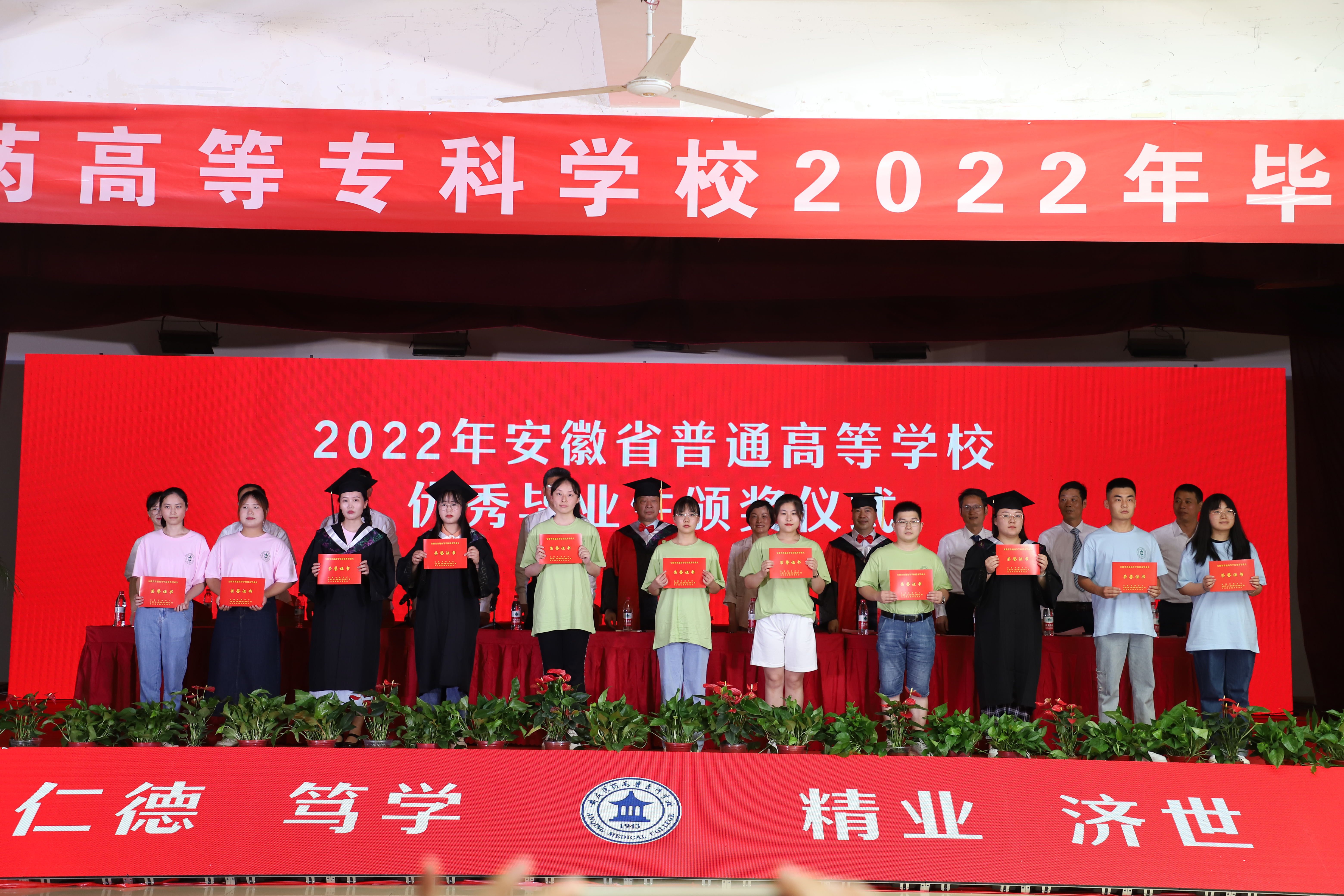 党委副书记张仕庆宣读《关于表彰2022年安徽省普通高等学校优秀毕业生》,授予安徽医科大学、安庆医药高等专科学校2022届联合培养6名本科生和我校59名专科生“2022年安徽省普通高等学校优秀毕业生”荣誉称号并予以表彰。