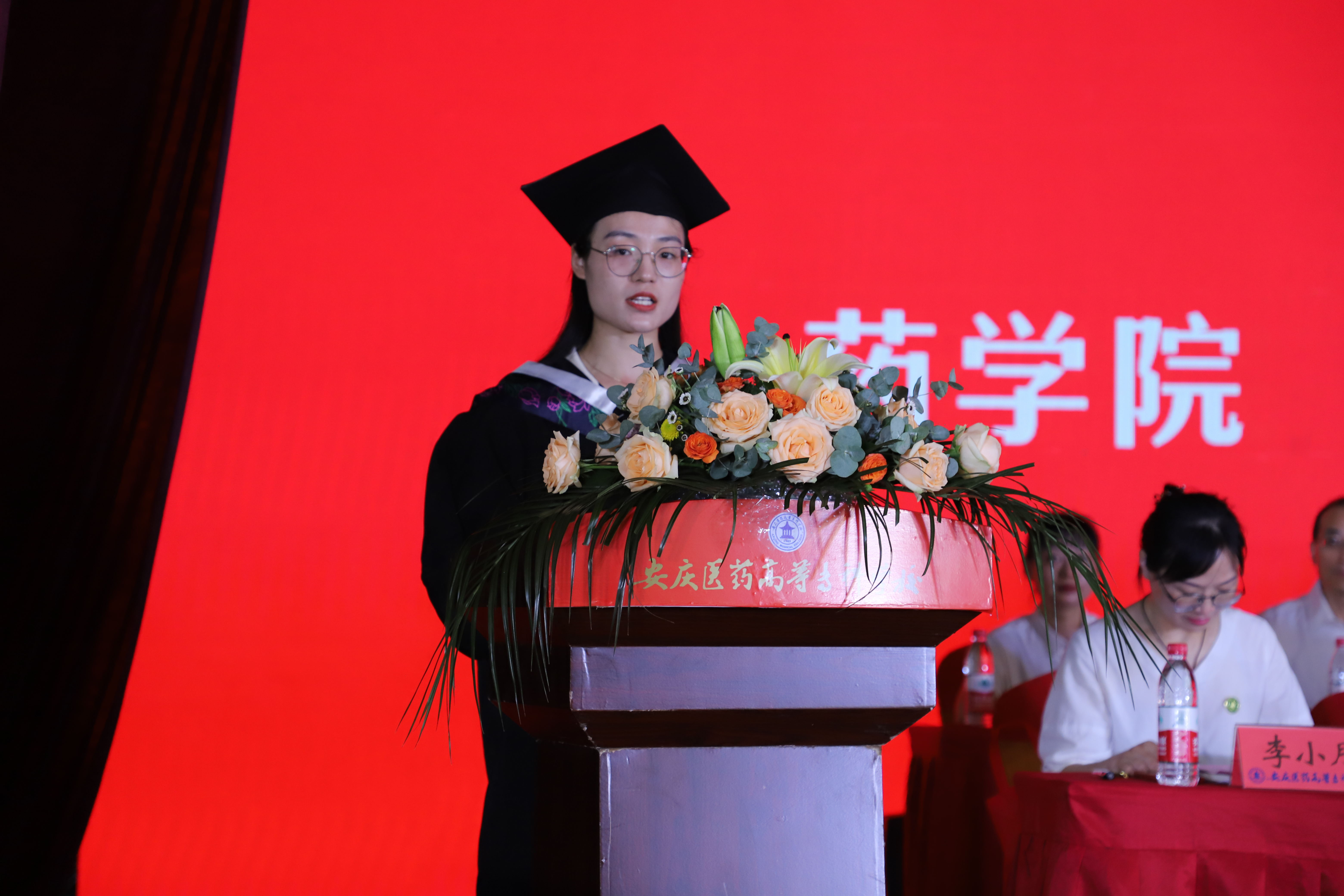 2020级药学专升本1班的田娇娇同学和2019级临床医学专业5班的石森飚同学分别作为全体毕业生代表发言,田娇娇同学分享了从我校专科、本科直至研究生的华丽蜕变,讲述了不断自我提升的奋斗史,并表达了对母校、老师和同学们的祝福。