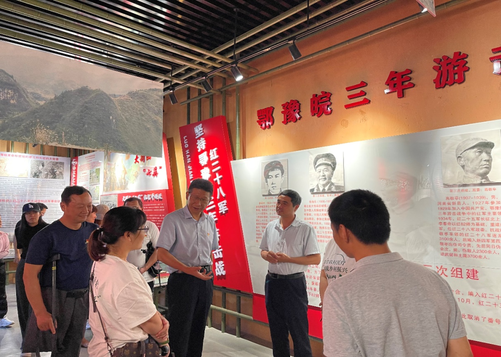 为迎接党的二十大胜利召开,庆祝中国共产党成立101周年,引领广大党员老师不忘初心、牢记使命,充分发挥先锋模范作用。7月31日,医学院党总支组织全体党员以及8名学生团员代表赴宿松县北浴乡罗汉尖革命根据地开展“为党旗添彩、为党徽增光”主题党日活动,校党委副书记、校长姚文兵作为普通党员参加。
