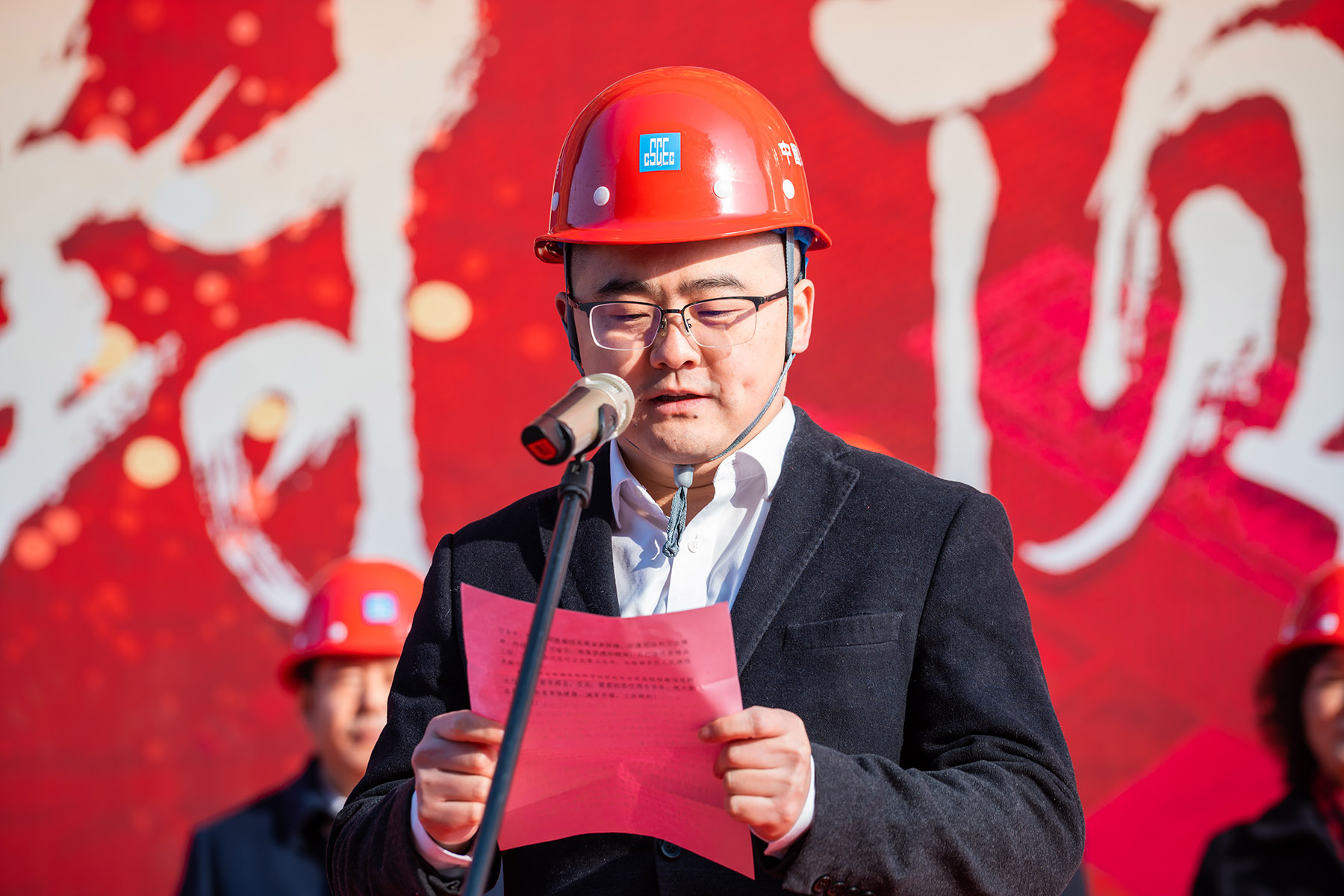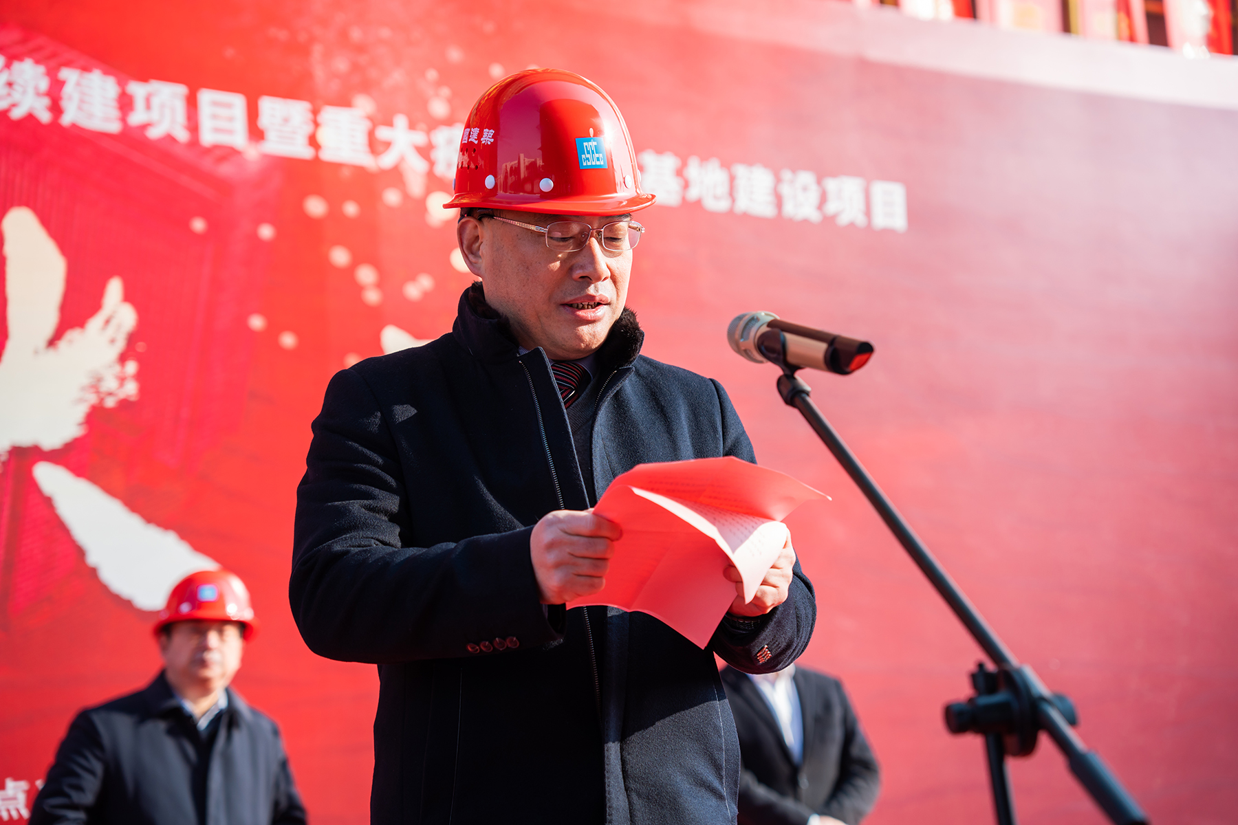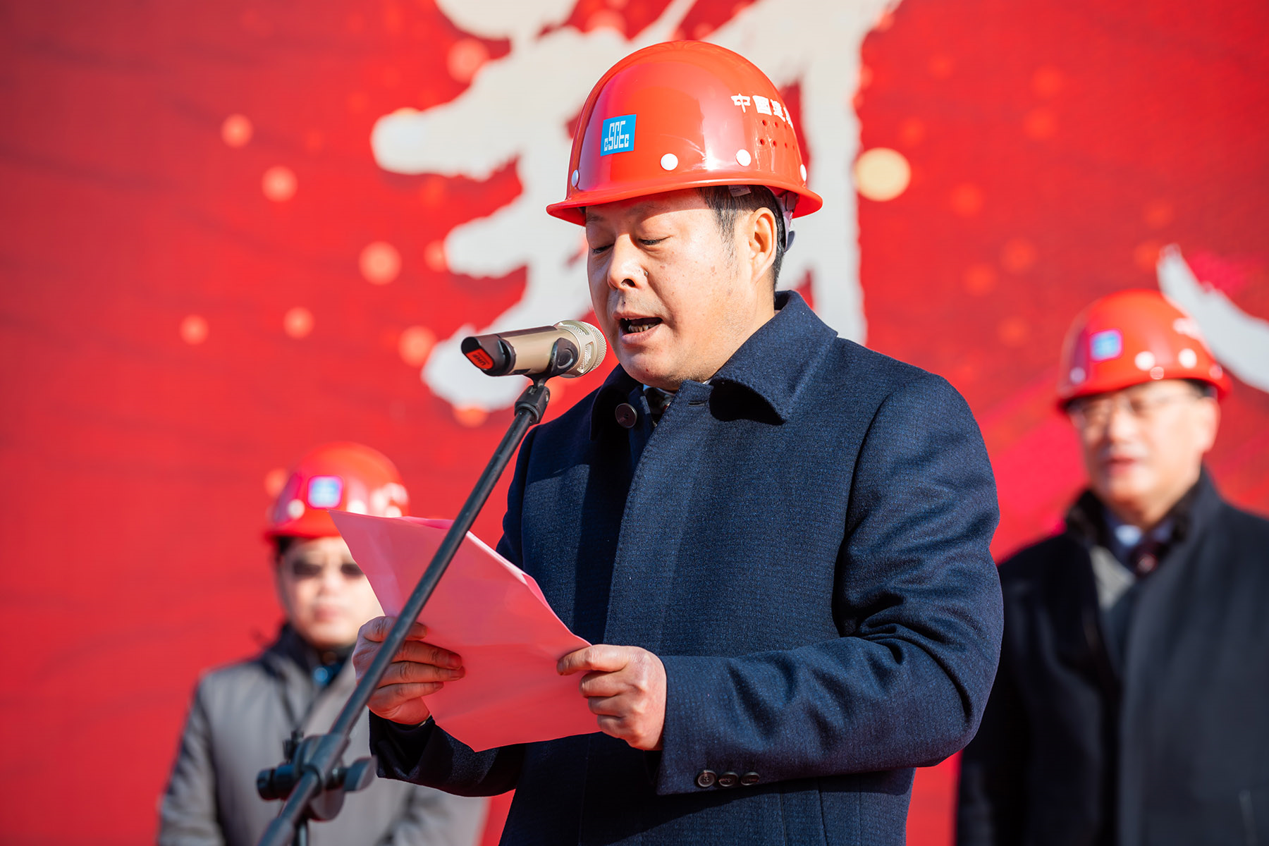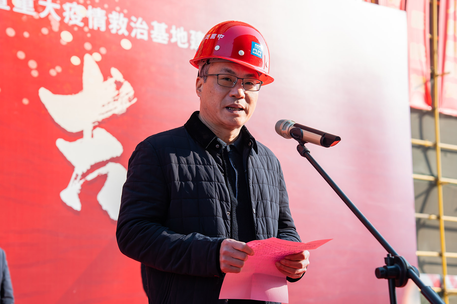 中建七局安徽有限公司执行总经理杨坤代表施工总承包单位致辞,表示将继续高标准推进项目建设,确保工程如期竣工。