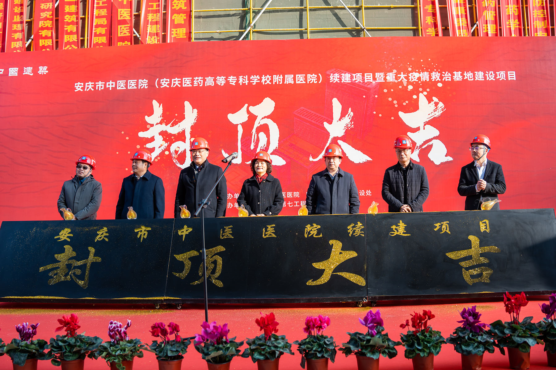 1月6日上午,安庆市中医医院举行续建项目主体结构封顶仪式。