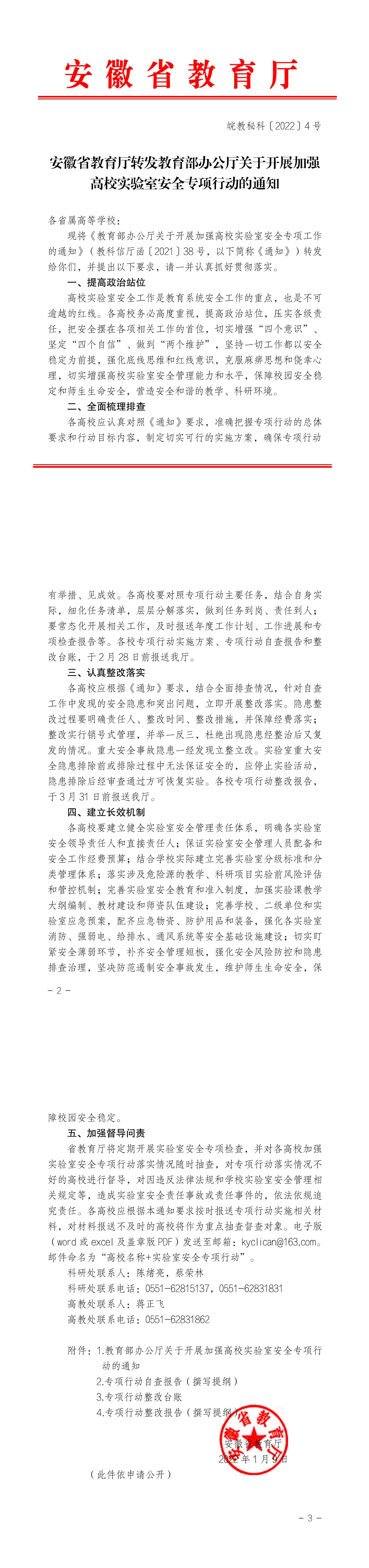 安徽省教育厅转发教育部办公厅关于开展加强高校实验室安全专项行动的通知.pdf