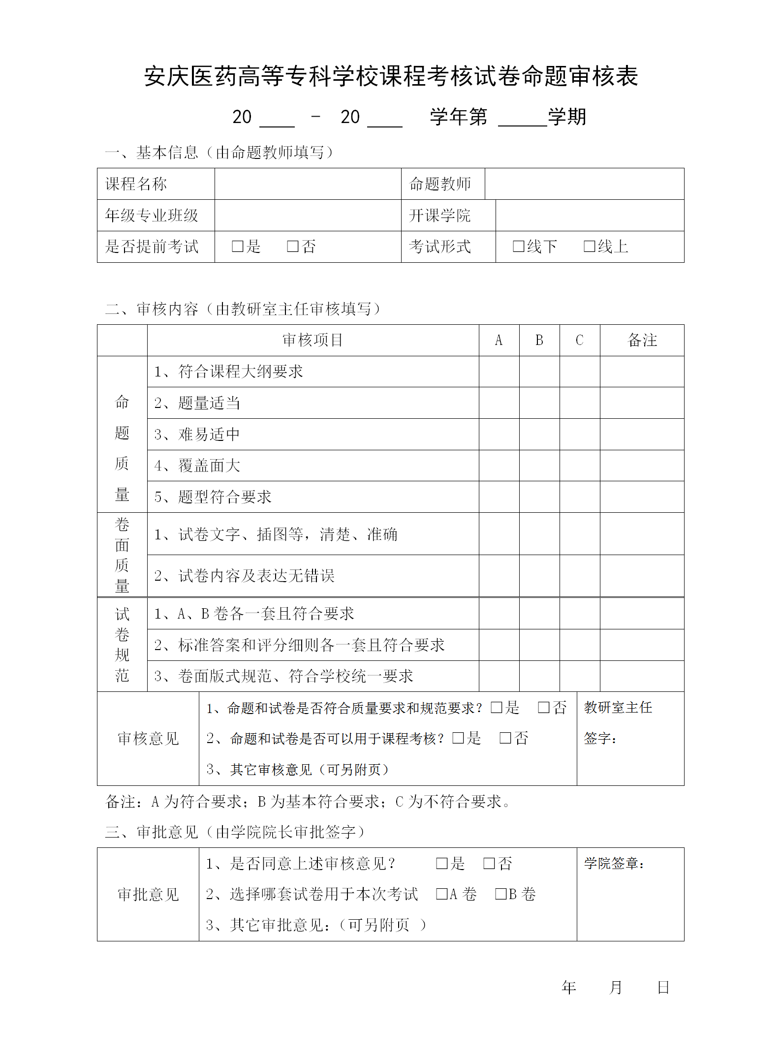 授课人数低于200人可选择线上考试,其余原则上采用线下卷面考试形式。请于2月6日11:00前将试卷(AB卷附答案)电子版、命题审核表纸质版提交至教务处216办公室,并在考试结束一周内完成成绩提交。