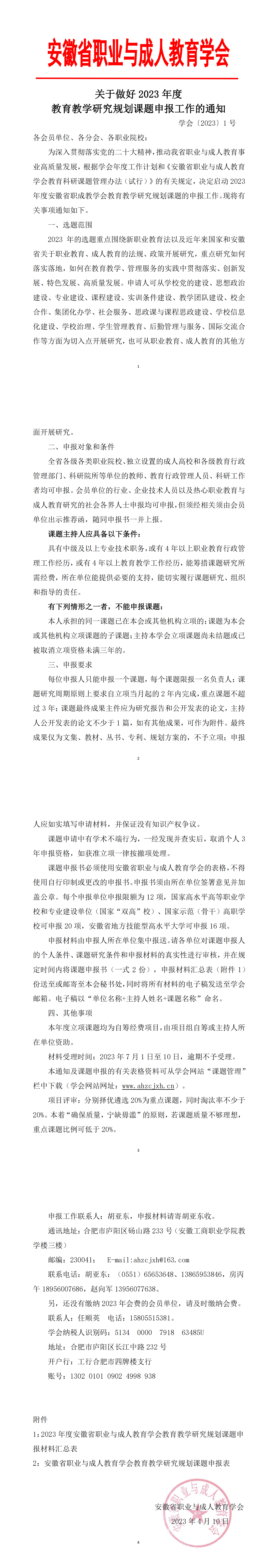 学会〔2023〕1号关于做好2023年度教育教学研究规划课题申报工作的通知